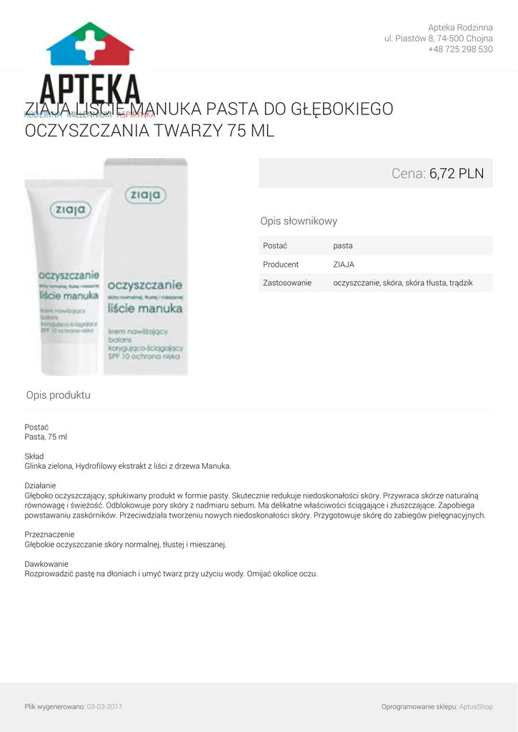 ziaja liście manuka pasta do głębokiego oczyszczania twarzy 75 ml