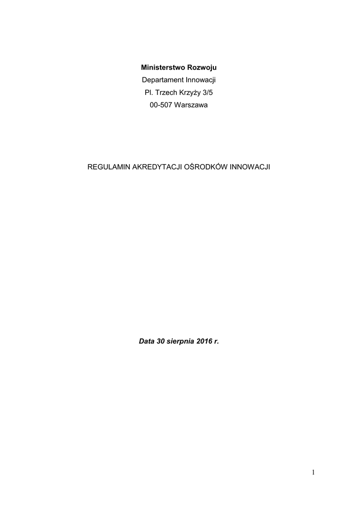 1 Ministerstwo Rozwoju Departament Innowacji Pl. Trzech Krzyży 3