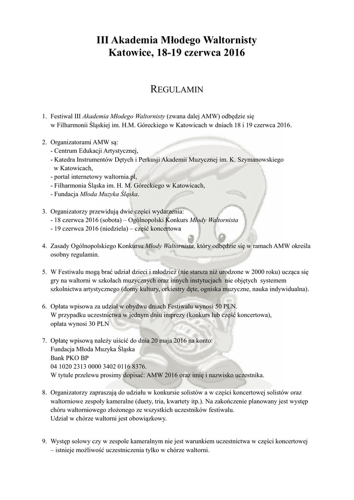 Regulamin AMW 2016 - Akademia Młodego Waltornisty
