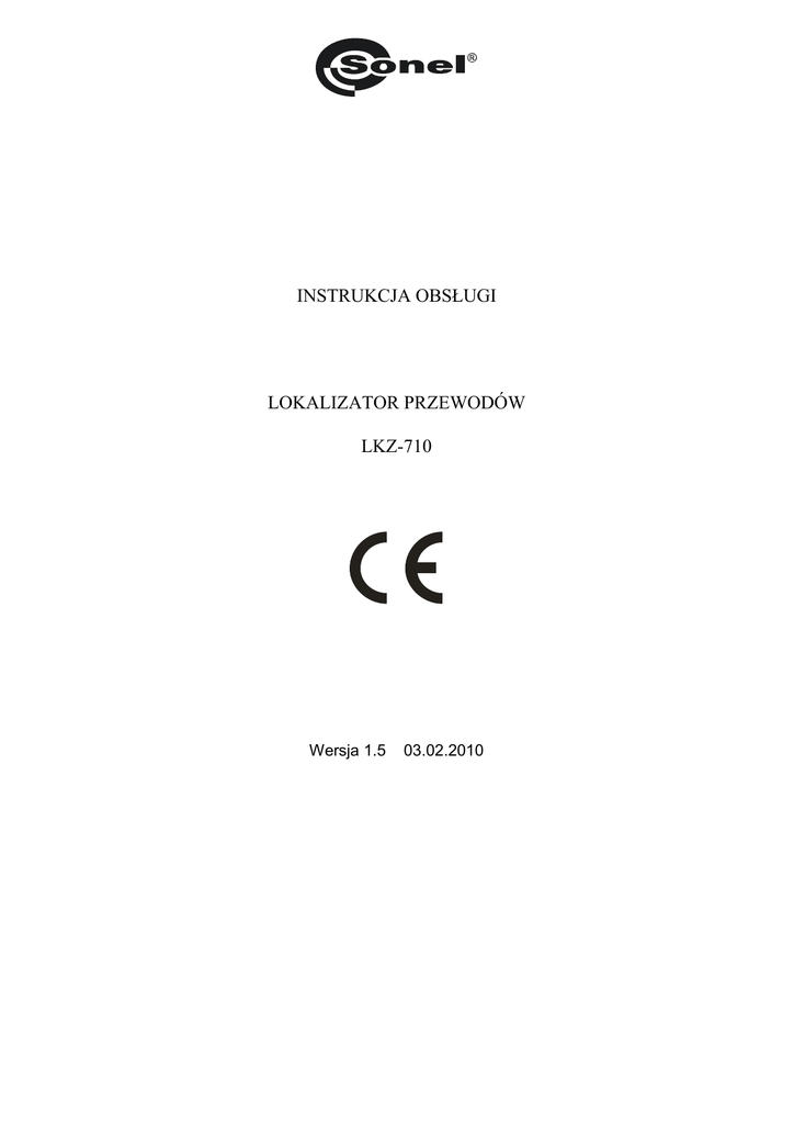 INSTRUKCJA OBSŁUGI LOKALIZATOR PRZEWODÓW LKZ-710 Wersja 1.5 03.02.2010 2 Sonel S.A. Lokalizator LKZ-710 przeznaczony jest głównie do wykrywania przewodów w obiektach budowlanych w róŜnych środowiskach (beton, cegła, drewno). MoŜliwe jest wykrywanie przewodów będących pod napięciem, bez potrzeby odłączania jakichkolwiek urządzeń od badanej sieci. NajwaŜniejsze cechy lokalizatora: • • • • wykrywanie przewodów w sufitach, ścianach i podłogach wykrywanie miejsca zwarcia w przewodach (z uŜyciem zewnętrznego źródła napięcia) lokalizowanie wyłączników i bezpieczników identyfikacja przewodów w instalacji Sonel S.A. 3 SPIS TREŚCI 1 WSTĘP ...................................................................................... 6 2 BEZPIECZEŃSTWO .............................................................. 7 3 PRZYGOTOWANIE ZESTAWU DO PRACY .................... 8 4 OPIS SYSTEMU ...................................................................... 9 4.1 NADAJNIK LKN-710P .......................................................... 9 4.2 ODBIORNIK LKO-710......................................................... 10 4.2.1 Płyta czołowa............................................................... 10 4.2.2 Sygnały dźwiękowe ...................................................... 11 4.3 PRZEWODY ......................................................................... 11 5 ZASADA DZIAŁANIA SYSTEMU...................................... 12 5.1 5.2 5.3 5.4 INFORMACJE OGÓLNE ......................................................... 12 NADAJNIK ........................................................................... 12 ODBIORNIK ......................................................................... 12 POMIARY W OBWODZIE ZAMKNIĘTYM ................................ 13 6 TRYB PRACY SYSTEMU.................................................... 15 7 POMIARY .............................................................................. 16 7.1 7.2 REGULACJA WZMOCNIENIA (CZUŁOŚCI).............................. 16 LOKALIZOWANIE PRZEWODÓW W SUFITACH, ŚCIANACH I PODŁOGACH ........................................................................ 17 7.2.1 Przewody pod napięciem ............................................. 17 7.3 IDENTYFIKACJA BEZPIECZNIKÓW W ROZDZIELNICY ............ 18 7.4 LOKALIZOWANIE ZWARĆ MIĘDZY PRZEWODAMI................. 19 7.5 ŚLEDZENIE TRASY PRZEWODÓW EKRANOWANYCH ............. 19 7.6 ŚLEDZENIE TRASY PRZEWODÓW W RURKACH METALOWYCH ..................................................................... 20 7.7 ŚLEDZENIE PRZEBIEGU RUR Z WODĄ I CENTRALNEGO OGRZEWANIA ...................................................................... 20 7.8 WYKRYWANIE PRZEBIEGU KANAŁÓW ................................. 21 8 ROZWIĄZYWANIE PROBLEMÓW ................................. 23 9 ZASILANIE SYSTEMU........................................................ 23 9.1 9.2 ZASILANIE NADAJNIKA ....................................................... 23 WYMIANA BATERII W ODBIORNIKU ..................................... 23 10 CZYSZCZENIE I KONSERWACJA .................................. 24 11 MAGAZYNOWANIE............................................................ 24 12 ROZBIÓRKA I UTYLIZACJA............................................ 24 4 Sonel S.A. 13 ZAŁĄCZNIKI ........................................................................ 25 13.1 13.2 13.3 13.4 13.5 DANE TECHNICZNE ............................................................. 25 WYPOSAśENIE STANDARDOWE ........................................... 25 WYPOSAśENIE DODATKOWE ............................................... 25 PRODUCENT ........................................................................ 26 USŁUGI LABORATORYJNE ................................................... 26 Sonel S.A. 5 1 Wstęp Dziękujemy za zakup naszego lokalizatora przewodów. Zestaw LKZ-710 jest nowoczesnym, wysokiej jakości przyrządem, łatwym i bezpiecznym w obsłudze. Jednak przeczytanie niniejszej instrukcji pozwoli uniknąć błędów przy lokalizacji i zapobiegnie ewentualnym problemom przy obsłudze zestawu. W niniejszej instrukcji posługujemy się trzema rodzajami ostrzeŜeń. Są to teksty w ramkach, opisujące moŜliwe zagroŜenia zarówno dla uŜytkownika, jak i zestawu. Teksty rozpoczynające się słowem ‘OSTRZEśENIE:’ opisują sytuacje, w których moŜe dojść do zagroŜenia Ŝycia lub zdrowia, jeŜeli nie przestrzega się instrukcji. Słowo ‘UWAGA!’ rozpoczyna opis sytuacji, w której niezastosowanie się do instrukcji grozi uszkodzeniem przyrządu. Wskazania ewentualnych problemów są poprzedzane słowem ‘Uwaga:’. OSTRZEśENIE: Przed uŜyciem przyrządu naleŜy dokładnie przeczytać niniejszą instrukcję i zastosować się do przepisów bezpieczeństwa i zaleceń producenta. OSTRZEśENIE: Zestaw LKZ-710 jest przeznaczony do poszukiwania i lokalizacji przewodów w ścianach. KaŜde zastosowanie inne niŜ podane w tej instrukcji moŜe spowodować uszkodzenie przyrządu i być źródłem powaŜnego niebezpieczeństwa dla uŜytkownika. OSTRZEśENIE: Zestawy LKZ-710 mogą być uŜywane jedynie przez wykwalifikowane osoby posiadające wymagane uprawnienia do przeprowadzania pomiarów w instalacjach elektrycznych. Posługiwanie się zestawem przez osoby nieuprawnione moŜe spowodować uszkodzenie przyrządu i być źródłem powaŜnego niebezpieczeństwa dla uŜytkownika. 6 Sonel S.A. 2 Bezpieczeństwo OSTRZEśENIE: Posługiwanie się nadajnikiem z uszkodzoną obudową lub izolacją przewodów jest zagroŜeniem dla zdrowia lub Ŝycia uŜytkownika. Aby zapewnić odpowiednią obsługę i poprawność uzyskiwanych wyników, naleŜy przestrzegać następujących zaleceń: • • • • przed rozpoczęciem eksploatacji zestawu naleŜy dokładnie zapoznać się z niniejszą instrukcją, lokalizator powinien być obsługiwany wyłącznie przez osoby odpowiednio wykwalifikowane i p