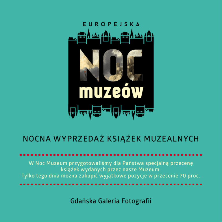 Nocna wyprzedaż książek muzealnych W Noc Muzeum przygotowaliśmy dla Państwa specjalną przecenę książek wydanych przez nasze Muzeum. Tylko tego dnia można zakupić wyjątkowe pozycje w przecenie 70 proc. Gdańska Galeria Fotografii Erwin Olaf (katalog wystawy czasowej 2014) Erwin Olaf uznawany jest za najważniejszego fotografa holenderskiego. Jest autorem fotografii, performerem i reżyserem filmowym. Kontrowersyjny w odbiorze i perfekcyjny w warsztacie, należy do najznakomitszych współczesnych twórców fotografii reklamowej. W projektach artystycznych inspiruje się nieograniczoną wyobraźnią, barokowości i estetyką kiczu. Katalog zawiera kilkadziesiąt fotografii, w większości prezentowanych na wystawie w Zielonej Bramie. Cena 24 PLN Cena obowiązująca w Noc Muzeów 18,00 PLN Zorka Project, przeciętni / Zorka Project, average people / (katalog wystawy czasowej 2011) Monika Bereżecka, Monika Redzisz, Bogdan Wojciszke Małgorzata Taraszkiewicz-Zwolicka (red.) Przeciętni to autorski projekt grupy fotograficznej Zorka Project (Monika Bereżecka, Monika Redzisz), realizowany od 2008 roku. Jest swego rodzaju współczesnym zapisem socjologicznym, modelem do zbadania sąsiadujących ze sobą społeczeństw pod kątem ich narodowego i indywidualnego poczucia przeciętności. Na wystawie zaprezentowanej w Gdańskiej Galerii Fotografii w 2011 r. pokazano kilkadziesiąt fotograficznych portretów osób, które uznały siebie za postaci zwyczajne, oraz teksty ilustrujące obraz, opracowane przez Monikę Redzisz. Cena: 20 PLN Cena obowiązująca w Noc Muzeów 6,00 PLN Album dla Gdańska 2008 (katalog wystawy pokonkursowej, 2008) Katalog zawiera fotografie, nagrodzone w I Międzynarodowym Konkursie Fotograficznym Album dla Gdańska, organizowanym przez Gdańską Galerię Fotografii. Cena: 6,50 PLN Cena obowiązująca w Noc Muzeów 1,95 PLN Album dla Gdańska 2010 (katalog wystawy pokonkursowej, 2010) Katalog zawiera fotografie, nagrodzone na III Międzynarodowym Konkursie Fotograficznym Album dla Gdańska, organizowanym przez Gdańską Galerię Fotografii. cena: 18,00 PLN Cena obowiązująca w Noc Muzeów 5,40 PLN Barbara Yoshida. 80 portretów (katalog wystawy czasowej, 2010) Barbara Yoshida, Mariola Balinska, Malgorztata Taraszkiewicz-Zwolicka Malgorztata Taraszkiewicz-Zwolicka (red.) Wystawa oraz towarzyszący jej katalog „80 portretów” realizowana w ramach projektu „Uwaga! Kobiety” prezentuje rozpoczęty w 1990 r. cykl klasycznych czarno – białych portretów kobiet artystek wykonanych przez nowojorską fotografkę Barbarę Yoshidę. Cena: 13 PLN Cena obowiązująca w Noc Muzeów 3,90 PLN Etnoinspiracje. Inspiracje kulturą ludową we współczesnym polskim wzornictwie, modzie, architekturze, reklamie… Pod red. Katarzyny Kulikowskiej i Cezarego Obracht-Prondzyńskiego Książka zawiera artykuły, podsumowujące konferencję „Etnoinspiracje”, która odbyła się 5 listopada 2011 roku w Oddziale Etnografii Muzeum Narodowego w Gdańsku, a także kilkadziesiąt fotografii. Celem konferencji oraz towarzyszącej jej wystawie pod takim samym tytułem było wywołanie refleksji nad zjawiskiem odwoływania się sztuki współczesnej i wzornictwa do źródeł kultury ludowej. Rok wydania 2013 Cena: 26,00 PLN Cena obowiązująca w Noc Muzeów: 7,80 PLN Teresa Miszkin. Malarstwo Wybitni Twórcy Wybrzeża Katalog wystawy katalog wystawy czasowej 2006 Wojciech Zmorzyński (red.) Bogato ilustrowany katalog wystawy monograficznej gromadzącej największy do tej pory dorobek artystki. W publikacji znalazły się także: nota biograficzna, wykaz wystaw indywidualnych i zbiorowych, nagród oraz obrazów w zbiorach muzealnych. Cena: 37 PLN Cena obowiązująca w Noc Muzeów 11,10 PLN Panowie na Waplewie Maciej Kraiński Wydawnictwo w sposób zwięzły opisuje dzieje Waplewa. Koncentruje się głównie na rodzinie ostatnich właścicieli Waplewa – hrabiów Ogończyk-Sierakowskich, w rękach których majątek pozostawał do roku 1939. Całość została wzbogacona mało znanymi fotografiami rodziny Sierakowskich oraz samego pałacu w Waplewie. Do książeczki została dołączona wkładka z drzewem genealogicznym hrabiów Ogończyk-Sierakowskich. Rok wydania 2010 Cena: 11 PLN Cena obowiązująca w Noc Muzeów 3,30 PLN