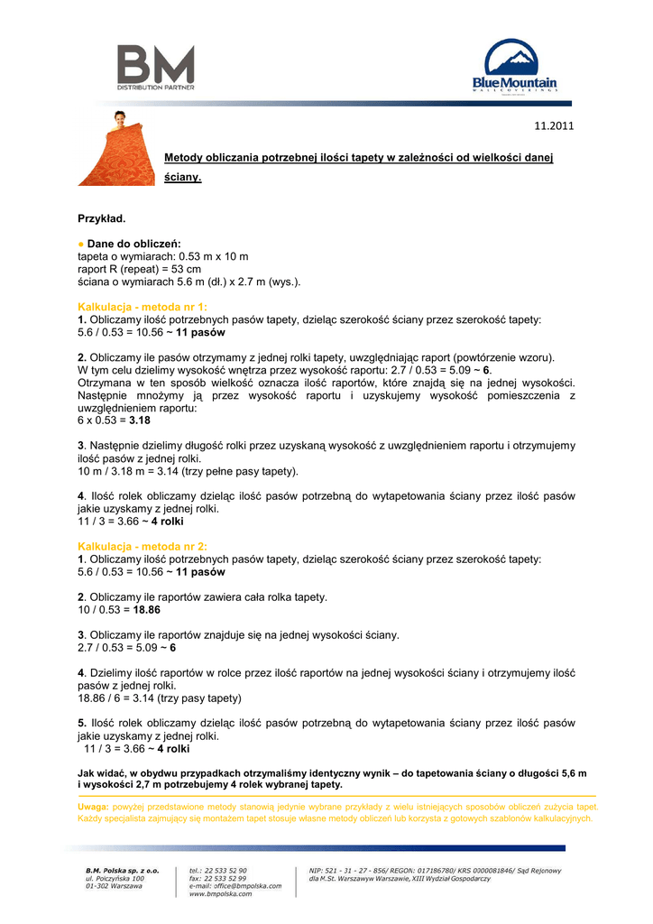 Metody obliczania potrzebnej ilości tapety w zaleŜności