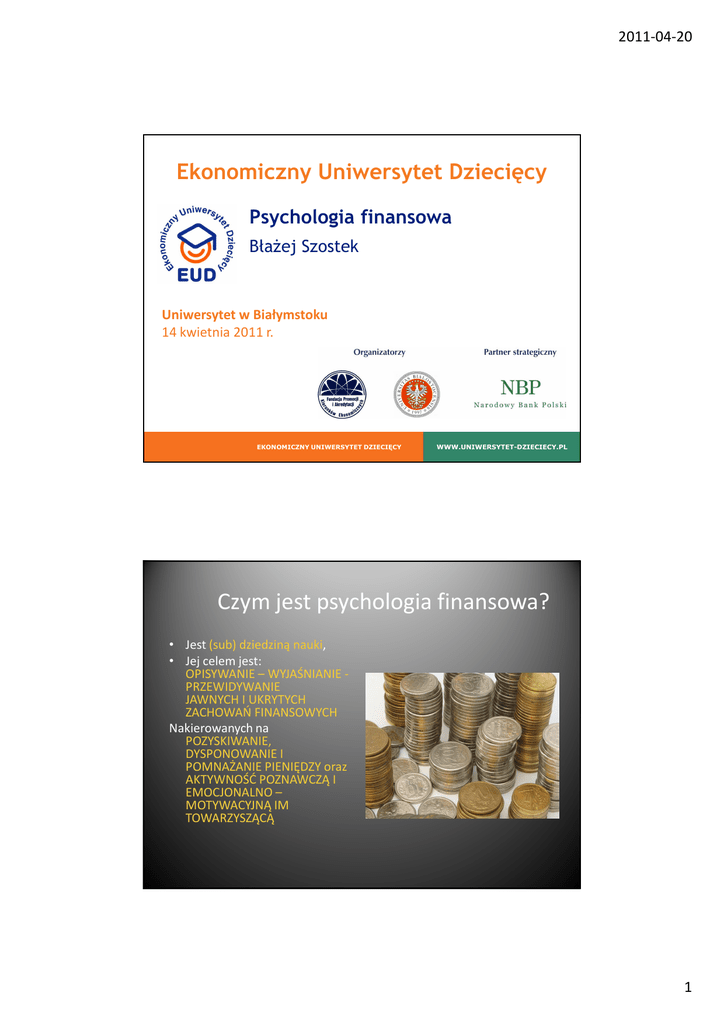 "Psychologia finansowa", Błażej Szostek, 14.04.2011 r., UwB Białystok