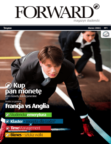 magazyn studencki Marzec 2008 | Kup pan monetę czyli monety kolekcjonerskie Studia za granicą: Francja vs Anglia Studenckaemerytura Klaster - recepta dla Łodzi? TimeManagement Biznes - sztuka walki Witajcie, Zespół: Aleksandra Berut Katarzyna Błaszkiewicz– Redaktor Naczelna Aleksandra Kulas Aleksandra Maćkowska Daniel Porzeżyński Ada Skiedrzyńska Łukasz Tyrajski Autorzy tekstów: Aleksandra Berut Katarzyna Błaszkiewicz Małgorzata Cywińska Agnieszka Giedzińska Marek Kaźmierczak Michał Krystyańczuk Łukasz Tyrajski Adam Wasiak przed Wami pierwszy numer magazynu studenckiego FORWARD. Po 15 latach działalności SKN PROGRESS przyszła pora na stworzenie pisma - o studentach i dla studentów, o Was i dla Was. Postanowiliśmy, że FORWARD ukaże się 27. marca 2008 na XII Kongres CESSAi oto jest. Naszym zamierzeniem było stworzenie pisma, które będzie poruszało tematykę finansową, ekonomiczną i inwestycyjną, ale równocześnie pozostanie blisko spraw ważnych dla naszych Czytelników - edukacji, rozwoju osobistego, kariery, stylu życia i, naturalnie, rozrywki. Pragniemy, aby nasz nowy magazyn dostarczał wam nie tylko informacji, ale też przyjemności płynącej z czytania. Mamy nadzieję, że to założenie udało nam się zrealizować i że każdy z Was znajdzie w FORWARDZIE wiele interesujących tekstów. Zdajemy sobie sprawę, że pierwszy numer jest jeszcze niedoskonały. Chcemy, aby każdy kolejny numer był lepszy i bardziej odpowiadał Waszym oczekiwaniom. Dlatego bardzo prosimy Was o opinie - zarówno te pozytywne, jak i krytyczne (krytyka mile widziana, ale uzasadniona i konstruktywna). Jeśli spodobał się Wam FORWARD i chcielibyście uczestniczyć w jego powstawaniu - również skontaktujcie się z nami (mail do redakcji poniżej), jesteśmy otwarci na współpracę. Już od pierwszego numeru pragniemy dotrzeć do jak największej liczby studentów, dlatego wychodzimy poza Wydział Ek-Soc i poza Uniwersytet Łódzki. FORWARD znajdzie się także na Politechnice Łódzkiej i w siedzibach naszych partnerów. Zapraszamy was także na stronę internetową SKN PROGRESS, gdzie znajdziecie FORWARD w wersji pdf. Dość wstępów, zapraszamy do lektury! Redakcja [email protected] SKN Progress Uniwersytet Łódzki Wydział Ekonomiczno-Socjologiczny Instytut Finansów, Bankowości i Ubezpieczeń Ul. Rewolucji 1905r. 41 90-255 Łódź Siedziba: pok. P-219 Tel/Fax (0-42) 635-51-05 [email protected] www.progress.org.pl “Wszystkie materiały chronione są prawem autorskim. Przedruk lub rozpowszechniane w jakiejkolwiek formie i jakimkolwiek języku bez pisemnej zgody wydawcy jest zabronione.” Patronat nad pismem objęli: prof. dr hab. Paweł Starosta Dziekan Wydziału Ekonomiczno-Socjologicznego Uniwersytetu Łódzkiego prof. zw. dr hab. Krystyna Piotrowska-Marczak Kierownik Instytutu Finansów, Bankowości i Ubezpieczeń na Wydziale Ekonomiczno-Socjologicznym Uniwersytetu Łódzkiego Patronat honorowy: Jolanta Chełmińska - Wojewoda Łódzki Patronat merytoryczny: portal Inwestycje.pl Forward - Marzec 2008 Spis treści Spis treści Trendy Biznesowe Kup pan monetę czyli monety kolekcjonerskie …...........................…….. 2 A może inwestycja w wino? ............................................................................ 5 Klaster - recepta dla Łodzi? .................................................................................. 8 Twoje finanse Studencka emerytura ……………………………........................................… 11 Superstudent - superkonto ……………........…………………….................... 13 Edukacja Studia we Francji ....……………………............................................………..…… Studia w UK ………………………………................................................………. Klucz do przyszłości .……………………..................................................……… Time Management ………………………………………...…....................……. 14 17 19 23 Styl życia Biznes - sztuka walki .………….........................................................……...……...... 25 Rozrywka Sudoku ……………………………………………..........................................…… 27 Wydarzenia Finance Week ……………….............................................……….....…………..... 28 Trendy Biznesowe Kup pan monetę czyli monety kolekcjonerskie Tekst: Łukasz Tyrajski [email protected] Kup pan monetę czyli monety kolekcjonerskie Monety Coraz więcej osób postrzega monety kolekcjonerskie nie tylko jako ładne błyskotki, lecz jako inwestycję, przynoszącą realny zysk. Czym jednak właściwie są te monety? Tak jak zwykły bilon, który nosimy w kieszeni, są one prawnym środkiem płatniczym w Polsce i możemy za ich pomocą dokonywać płatności w naszym kraju. Jednak raczej nikt nie używa ich w tym celu, gdyż ich cena kilkakrotnie przekracza wartość nominalną. Obecnie NBP emituje monety srebrne o nominałach dziesięć i dwadzieścia złotych oraz złote monety stu- i dwustuzłotowe. Poza monetami z metali szlachetnych możemy również znaleźć monety dwuzłotowe ze stopu Nordicgold, których cena emisyjna z reguły wynosi dwa, trzy złote. Znaczna część monet upamiętnia rocznicę ważnego wydarzenia historycznego. Inne zaś wydawane są w seriach takich jak „Zwierzęta świata” czy „Zabytki kultury materialnej w Polsce”. Wiele przydatnych informacji na temat monet kolekcjonerskich możemy znaleźć na stronie NBP. Dowiemy się tam między innymi, jaki jest plan emisyjny oraz jakie monety zostały wydane do chwili obecnej. Pewną ciekawostką jest fakt, że bank centralny wydał również jeden banknot kolekcjonerski z wizerunkiem Jana Pawła II o nominale 50 zł. Inwestycja przyniosła swojemu właścicielowi aż 5163,15% zysku! To nie żart - moneta, na którą w chwil