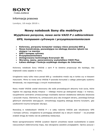 Informacja prasowa Nowy notebook Sony dla mobilnych