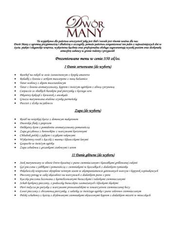 Prezentowane menu w cenie:350 zł/os.