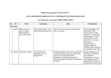 Lista projektów odrzuconych wraz z uzasadnieniem, wersja