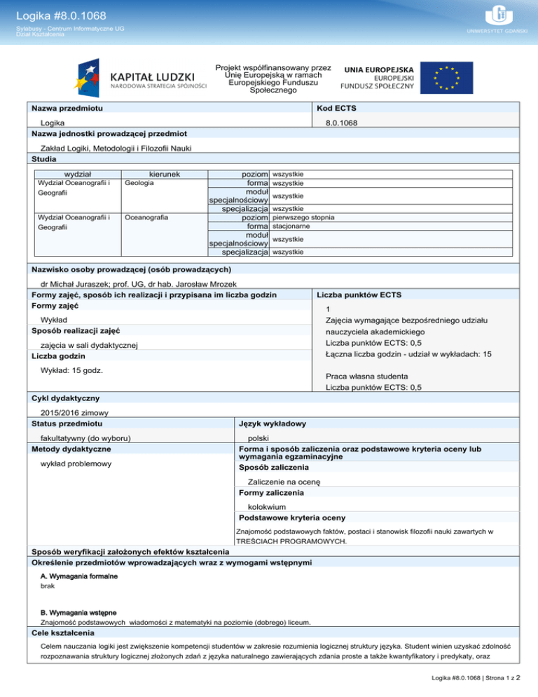 Logika - Wydział Oceanografii i Geografii