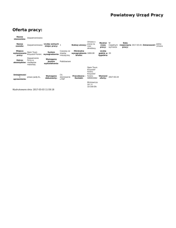Powiatowy Urząd Pracy Oferta pracy: