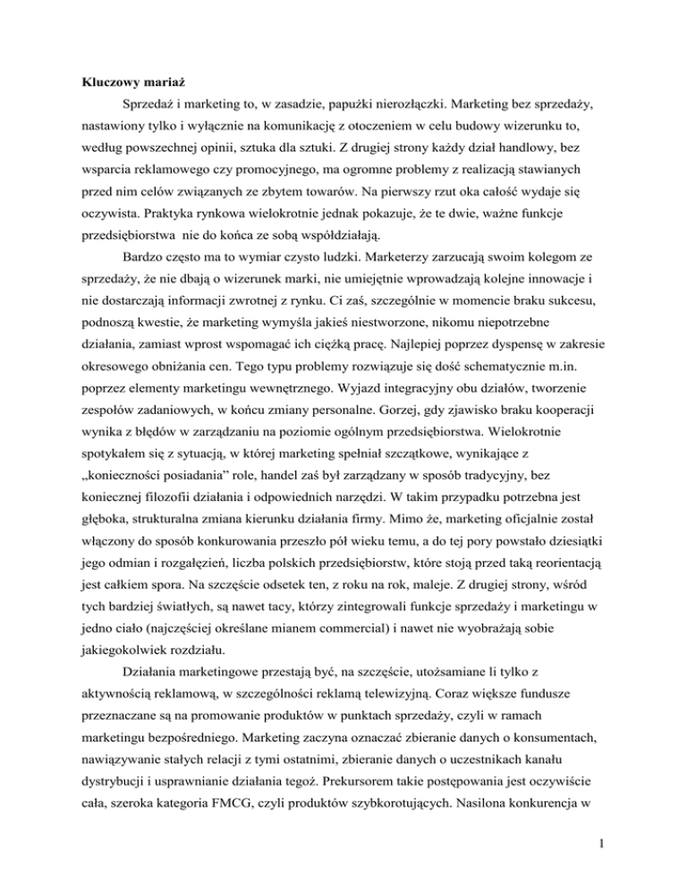 1 Kluczowy mariaż SprzedaŜ i marketing to, w zasadzie, papuŜki