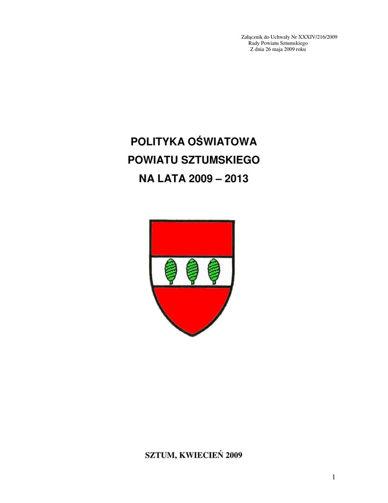 polityka oświatowa powiatu sztumskiego na lata 2009