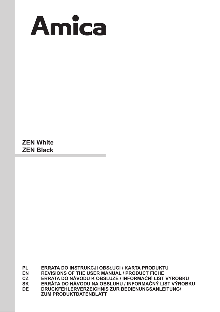 ZEN White ZEN Black PL EN CZ SK DE ERRATA DO INSTRUKCJI OBSŁUGI / KARTA PRODUKTU REVISIONS OF THE USER MANUAL / PRODUCT FICHE ERRATA DO NÁVODU K OBSLUZE / INFORMAČNÍ LIST VÝROBKU ERRÁTA DO NÁVODU NA OBSLUHU / INFORMAČNÝ LIST VÝROBKU DRUCKFEHLERVERZEICHNIS ZUR BEDIENUNGSANLEITUNG/ ZUM PRODUKTDATENBLATT KARTA PRODUKTU Karta produktu przygotowana zgodnie z Rozporządzeniem Delegowanym Komisji (UE) NR 65/2014 Nazwa dostawcy Identyfikator modelu dostawcy Amica Wronki S.A. Amica Wronki S.A. ZEN White ZEN Black 1160598 1160593 Roczne zużycie energii (AEChood) [kWh/rok] 70 70 Klasa efektywności energetycznej B B 22,4 22,4 C C Wydajność przepływu dynamicznego (FDEhood) Klasa wydajności przepływu dynamicznego Sprawność oświetlenia (LEhood) [ lux/W] 39,8 39,8 Klasa sprawności oświetlenia A A Efektywność pochłaniania zanieczyszczeń (GFEhood) 83 83 Klasa efektywności pochłaniania zanieczyszczeń C C Natężenie przepływu powietrza (przy min / max wydajności) [m3/h] 254/643 254/643 Natężenie przepływu powietrza (przy ustawieniu trybu intensywnego / turbo) [m3/h] - - 42/65 42/65 Poziom hałasu przy min / max wydajności (przy ustawieniu trybu intensywnego / turbo) [dB] - - Zużycie energii elektrycznej w trybie wyłączenia (Po) [W] - 1,3 Zużycie energii elektrycznej w trybie czuwania (Ps) [W] - - Poziom hałasu przy min / max wydajności [dB] Do ustalenia wyników oraz zgodnie z wymaganiami w odniesieniu do etykietowania energetycznego oraz w odniesieniu do wymogów dotyczących ekoprojektu zastosowano następujące metody obliczeń i pomiaru: - Dyrektywa Parlamentu Europejskiego i Rady 2010/30/UE; ROZPORZĄDZENIE NR 65/2014, - Dyrektywa Parlamentu Europejskiego i Rady 2009/125/WE; ROZPORZĄDZENIE NR 66/2014, - EN 50564 – Elektryczny sprzęt domowy – pomiar poboru mocy sprzętu w stanie gotowości do pracy. - EN 60704-2-13 - Elektryczne przyrządy do użytku domowego i podobnego -- Procedura badania hałasu -- Wymagania szczegółowe dla okapów nadkuchennych. - PN-EN 61591 - Domowe okapy nadkuchenne i inne wyciągi oparów kuchennych -- Metody badań cech funkcjonalnych. 2 DANE TECHNICZNE INFORMACJE DOTYCZĄCE DOMOWYCH OKAPÓW NADKUCHENNYCH Identyfikator modelu dostawcy ZEN White ZEN Black 1160598 1160593 Współczynnik upływu czasu (f) 1,2 1,2 Wskaźnik efektywności energetycznej (EEIhood) 69 69 Natężenie przepływu powietrza mierzone w optymalnym punkcie pracy (QBEP) [m3/h] 360 360 Ciśnienie powietrza mierzone w optymalnym punkcie pracy (PBEP) [Pa] 332 332 Maksymalne natężenie przepływu powietrza (Qmax) [m3/h] 643 643 Pobór mocy mierzony w optymalnym punkcie pracy (WBEP) [W] 148 148 4 x 1.75 4 x 1.75 Średnie natężenie oświetlenia zapewnianego przez system oświetlenia na powierzchni płyty grzejnej (Emiddle) [lux] 279 279 Poziom mocy akustycznej (LWA) [dB] 65 65 Minimalna odległość okapu od płyty roboczej [mm] 650 650 230 V/ 50Hz 230 V/ 50Hz O/O/√ O/O/√ 202 202 Moc nominalna systemu oświetlenia [WL] [W] Napięcie [V / Hz] Oświetlenie żarowe / halogenowe / LED Całkowity pobór mocy [W] Klasa ochrony przeciwporażeniowej I I O/√/O/O/O O/O/√/O/O Szerokość [mm] 900 900 Głębokość [mm] 500 500 Wysokość [mm] Kolor: inox / biały / czarny / brązowy / inny 620 - 1000 620 - 1000 Wylot [mm] 150 150 Masa urządzenia [kg] 18,5 18,5 Informacje istotne dla użytkowników w celu zmniejszenia łącznego wpływu procesu gotowana na środowisko W celu zmniejszenia łącznego wpływu procesu gotowania na środowisko należy: - podgrzewać potrawy w garnkach lub patelniach z użyciem pokrywek, - pamiętać o wyłączeniu okapu po zakończeniu gotowania (lub korzystać z funkcji opóźnionego wyłączenia (w niektórych modelach), - pamiętać o wyłączeniu oświetlenia okapu po zakończeniu gotowania, - dostosować pole grzewcze, płomień palnika do wielkości garnka, - najwyższe prędkości silnika okapu stosować wyłącznie przy dużym stężeniu oparów kuchennych, - regularnie czyścić/wymieniać filtry (czyste filtry poprawiają efektywność okapu). 3 PRODUCT FICHE Product sheet prepared in accordance with the Commission Delegated Regulation (EU) No 65/2014 Amica Wronki S.A. Amica Wronki S.A. ZEN White ZEN Black 1160598 1160593 Annual energy consumption (AEC hood) [KWh / year] 70 70 Energy efficiency class B B 22,4 22,4 C C Supplier name Supplier's model identifier Fluid dynamic efficiency (FDE hood) Fluid dynamic efficiency class Lighting efficiency (LE hood) [lux/W] 39,8 39,8 Lighting efficiency class A A Grease filtering efficiency (GFEhood) 83 83 Grease filtering efficiency class C C Air flow rate (at min / max speed) [m³/h] 254/643 254/643 Air flow rate (at high speed/turbo mode) [m³/h] - - 42/65 42/65 Noise level at min / max speed (at high speed/turbo mode) [dB] - - Power consumption in the off-mode Po [W] - 1,3 Power consumption in standby mode Ps [W] - - Noise level at min / max speed [dB] To determine the results, and in accordance with the requirements in relation to the labelling of energyrelated products and with regard to ecodesign requirements, the following calculation and measurement methods were applied: - Directive of the European Parliament and of the Council 2010/30/EU; REGULATION NO 65/2014, - Directive of the European Parliament and of the Council 2009/125/EC; REGULATION NO 66/2014, - EN 50564 — Electrical and electronic household and office equipment. Measurement of low power consumption - EN 60704-2-13 — Household and similar electrical appliances. Test code for the determination of airborne acoustical noise. Particular requirements for range hoods - EN 61591 — Household range hoods and other cooking fume extractors – Methods for measuring performance 4 SPECIFICATION INFORMATION ON DOMESTIC RANGE HOODS Supplier's model identifier ZEN White ZEN Black 1160598 1160593 Time increase factor (f) 1,2 1,2 Energy Efficiency Index (EEIhood) 69 69 The air flow rate measured at the best efficiency point (QBEP) 