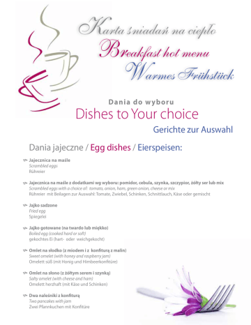 Karta śniadań na ciepło Breakfast hot menu Warmes Frühstück