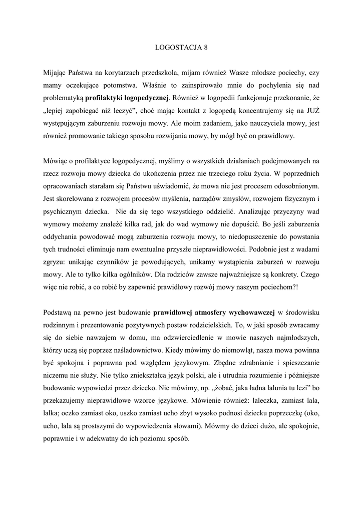 LOGOSTACJA 8 Mijając Państwa na korytarzach przedszkola