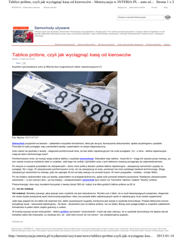Tablice próbne, czyli jak wyciągnąć kasę od kierowców - Motoryzacja w INTERIA.PL - auta uż... Strona 1 z 2 INTERIA.PL - Ustaw jako startową Wersja mobilna Zaloguj się Załóż Konto Interia Poczta Ding Prześ Szukaj w serwisie Motoryzacja Samochody używane Chcesz kupić lub sprzedać samochód? Interesujesz się pojazdami z drugiej ręki? Ten serwis powstał specjalnie z myślą o tobie! Znajdziesz w nim porady ekspertów dotyczące oceny stanu auta przed zakupem, testy samochodów używanych, rankingi niezawodności i wiele innych, ciekawych informacji. Rankingi niezawodności Opinie użytkowników Nie daj się oszukać! Testy samochodów używanych Porady ekspertów Galerie Tablice próbne, czyli jak wyciągnąć kasę od kierowców Sobota, 12 stycznia (23:34) Poleć 14 Kupiłem sprowadzone auto (z Włoch) bez oryginalnych tablic rejestracyjnych.(*) Fot. Norma /REPORTER Samochód przyjechał na lawecie - załatwiłem wszystkie formalności, takie jak akcyza, tłumaczenia dokumentów, opłata recyklingowa i podatek. Pozostał mi tylko przegląd, więc zamówiłem lawetę i pojechałem na stacje diagnostyczną. Auto nawet nie zjechało z lawety - diagnosta poinformował mnie, że bez tablic rejestracyjnych nie zrobi przeglądu. Co - u licha - tablice rejestracyjne mają do stanu technicznego auta? Poinformowano mnie, że muszę wziąć próbne tablice z wydziału komunikacji. Wybrałem więc tablice - koszt 62 zł - mogę ich używać przez miesiąc, po tym czasie musze je osobiście zdać w urzędzie. Jeśli tego nie zrobię i sprzedam auto z tymi tablicami zostanę pociągnięty do odpowiedzialności. Po wizycie w urzędzie poszedłem do ubezpieczalni - skoro mam próbny dowód i polskie tablice rejestracyjne - ubezpieczę samochód i pojadę na przegląd. Nic z tego. W ubezpieczalni poinformowano mnie, że nie ubezpieczą mi auta, ponieważ nie mam polskiego badania technicznego. Mogę ubezpieczyć samochód na miesiąc, jeśli nie upłynęło 30 dni od daty zakupu na umowie kupna. W moim przypadku - niestety - minęło 30dni. Po raz kolejny zadzwoniłem więc po lawetę, pojechałem na przegląd techniczny, gdzie auto przeszło badanie pozytywnie. Następnie ubezpieczyłem samochód i - w tym samym dniu - po raz kolejny - zarejestrowałem samochód (tym razem na "normalne" tablice) i zdałem "blachy" próbne. Podsumowując: dwa razy musiałem korzystać z lawety (koszt 300 zł) i nabyć (na kilka godzin!) tablice próbne za 62 zł. (*) - list do redakcji Od redakcji: Niestety sytuacja, jaką opisuje nasz czytelnik nie jest odosobniona. Wynika ona z faktu, że w myśl obowiązujących przepisów, diagnosta nie może wydać pozytywnej opinii technicznej pojazdowi, który nie posiada tablic rejestracyjnych (pole nr rejestracyjny musi zostać wypełnione). Jeśli więc pojazd nie ma tablic lub ważność tzw. tablic wywozowych wygasła, konieczna jest wizyta w wydziale komunikacji. Przepis faktycznie mocno komplikuje życie - samochód rejestrujemy - de facto - dwukrotnie (raz na tablice próbne, raz na stałe). Biorąc pod uwagę kolejki w urzędach załatwienie formalności w jeden dzień często graniczy z cudem. W trudnej sytuacji są też motocykliści - tablice próbne są bowiem "przechodnie", może się więc zdarzyć, że w wydziale komunikacji nie będzie akurat kompletu tablic dla motocykla, co skutkuje tym, że - póki ktoś innych ich nie zwróci - nie zarejestrujemy pojazdu. INTERIA.PL Motoryzacja w INTERIA.PL - jesteś kierowcą lub motocyklistą? Dobrze trafiłeś! Nasz serwis jest dedykowany osobom, którym auta, motocykle i samochody osobowe nie są obce. Być może właśnie planujesz zakup auta. Skorzystaj z naszych porad, jak kupować samochód i motocykl oraz dowiedz się, jak przeprowadzić tuning auta. W serwisie także: nowości motoryzacyjne, auto http://motoryzacja.interia.pl/wydarzenie/uzywane/news/tablice-probne-czyli-jak-wyciagnac-kas... 2013-01-14 Tablice próbne, czyli jak wyciągnąć kasę od kierowców - Motoryzacja w INTERIA.PL - auta uż... Strona 2 z 2 INTERIA.PL - Ustaw jako startową Wersja mobilna Zaloguj się Załóż Konto Interia Poczta Ding moto, relacje z targów samochodowych oraz wyniki testów. Napisz do nas Mapa serwisu Newsroom RSS Przeglądaj w wersji mobilnej Reklama Korzystanie z portalu oznacza akceptację Regulaminu. Copyright © 1999-2013 INTERIA.PL. Wszystkie prawa zastrzeżone. http://motoryzacja.interia.pl/wydarzenie/uzywane/news/tablice-probne-czyli-jak-wyciagnac-kas... 2013-01-14