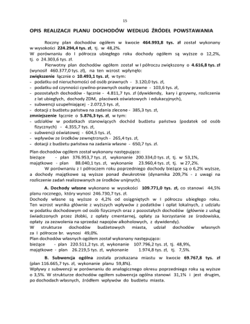 opis realizacji planu dochodów według źródeł