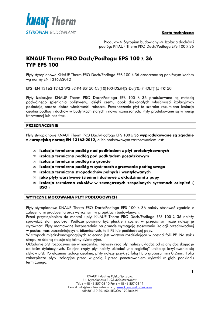 KNAUF Therm PRO Dach/Podłoga EPS 100 λ 36 TYP EPS 100