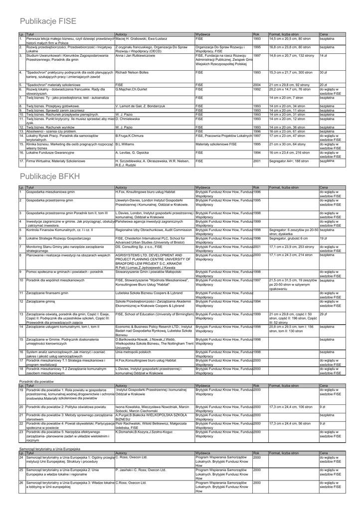 Publikacje FISE Publikacje BFKH