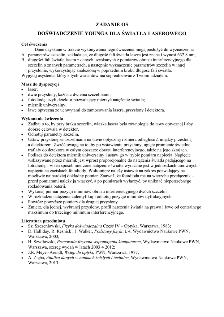ZADANIE O5 DOŚWIADCZENIE YOUNGA DLA ŚWIATŁA
