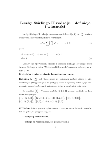 Liczby Stirlinga II rodzaju oznaczane symbolem S(n, k) lub