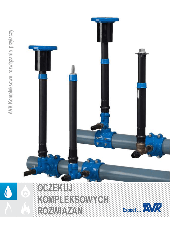 OD OCZEKUJ KOMPLEKSOWYCH ROZWIĄZAŃ AVK Kompleksowe rozwiązania przyłączy PONAD 40 LAT NA RYNKU W 1969 AVK wprowadziło na rynek pierwszą zasuwę do wody. Pięć lat później uruchomiliśmy produkcję zasuw przyłączeniowych z żeliwa, następnie rozszerzyliśmy naszą gamę o zasuwy przyłączeniowe z mosiądzu i POMu (Polioksymetylenu). Nasze zaangażowanie w tworzenie produktów wysokiej jakości oraz ciągłego rozwoju technologicznego jest powszechnie uznawane na całym świecie. Ponad 2800 pracowników w grupie AVK robi co w ic h mocy, by zapewnić nam miejsce w czołówce światowych producentów za suw, hydrantów, armatury i akcesoriów do wody, gazu, oczyszczania ścieków i ochrony przeciwpożarowej. 2 SYNTETYKI ŻELIWO COMPOSITE RURY OBEJMY SZTYWNY LUB TELESKOPOWY PRZEDŁUŻACZ TRZPIENIA AC Żeliwne ŻELIWO Żeliwne czarne RURY OBEJMY MOSIĄDZ POM PVC PE System rozwiązań AVK AVK oferuje zasuwy przyłączeniowe z trzech różnych materiałów: żeliwa sferoidalnego, mosiądzu i POMu (polioksymetylenu), jak również szeroką gamę akcesoriów dla kompletnej instalacji takich jak przedłużacze trzpienia, skrzynki uliczne i obejmy do nawiercania. Kompletne systemy połączeń AVK są dobrze sprawdzonymi rozwiązaniami, które są proste w montażu, nie wymagają konserwacji i mają długą żywotność. Każdy produkt ma doskonałe cechy konstrukcyjne, a po połączeniu produkty tworzą najlepszy z możliwych system charakteryzujący się trwałością i niezawodnością. Zaawansowana technologia Produkty AVK są wytwarzane w nowoczesnych zakładach o wysokim stopniu automatyzacji. Zapewniamy, że jakość jest integralną częścią każdego naszego procesu produkcyjnego. Dla zapewnienia wysokiej jakości AVK jest firmą certyfikowaną zgodnie ze standardem ISO 9001. Co więcej mamy certyfikat ISO 14001, międzynarodowej normy zarządzania środowiskiem oraz OHSAS 18001 i międzynarodowy standard Occupational Health and Safety Standard. 3 WYSOKA WYTRZYMAŁOŚĆ TRZPIENIA I WYJĄTKOWA KONSTRUKCJA KLINA Zasuwy przyłączeniowe AVK są trwałe i bezobsługowe dzięki wyjątkowej wytrzymałości trzpienia i wyjątkowej konstrukcji klina zapewniającego niskie momenty pracy, oraz sprawne działanie zasuwy. Trzpień ze stali nierdzewnej z gwintem walcowanym Gwint trzpienia jest walcowany na zimno co utrzymuje strukturę stali, a zatem zwiększa wytrzymałość trzpienia. Ten proces prowadzi do gładkich powierzchni gwintowanych co daje niskie momenty pracy i dłuższą żywotność. 4 Doskonała konstrukcja klina Kliny AVK są lepsze od tradycyjnych konstrukcji klina. Klin wykonany jest z mosiądzu odpornego na odcynkowanie, wulkanizowany gumą EPDM zatwierdzoną do wody pitnej. Rdzeń klina jest zanurzany w dwóch kąpielach zapewniając tym samym wyjątkową przyczepność pomiędzy gumą a rdzeniem z mosiądzu. W rezultacie, możemy zaoferować najlepszą przyczepność gumy i ochronę antykorozyjną na rynku. Unikalne cechy Zanieczyszczenia są „wchłaniane” przez gumę, Podwójny proces wulkanizacji zapewnia gdy zasuwa jest w pozycji zamkniętej. maksymalną przyczepność gumy. Prowadnice klina, kształt klina i specjalny profil gumy zapewniają niskie momenty obrotowe przy zamykaniu. Guma wulkanizowana do rdzenia o grubości min. 1,5 mm na wszystkich powierzchniach nośnych oraz 4 mm na wszystkich powierzchniach uszczelniających dające optymalną ochronę przed korozją. Mieszanka gumy AVK oferuje wyjątkową kompresję i odporność na chemikalia do uzdatniania wody, jak również minimalizuje problem powstawania biofilmu. Wszystkie typy zasuw mają pełny i prosty Gdy zanieczyszczenia są wypłukiwane guma odzyskuje swój pierwotny kształt. przelot, który zapobiega stratom ciśnienia i sedymentacji osadów na dnie zasuwy. Związki gumy AVK Przeprowadzane są testy w celu sprawdzenia szczelność. AVK GUMMI A/S unowocześnia i produkuje czy na wymaganym poziomie są wartości Zanieczyszczenia nie mają wpływu na związki gumy do klinów i uszczelek z odkształcenia trwałego przy ściskaniu, powierzchnie gumy lub szczelność zasuwy, wykorzystaniem bardzo zaawansowanych przyczepności i wytrzymałości na rozciąganie. ponieważ są absorbowane przez gumę, gdy zasuwa jest w pozycji zamkniętej. Gdy zasuwa technologii. W ciągu całego procesu produkcyjnego dane AVK GUMI A/S posiada ogromną wiedzę w jest ponownie otwarta zanieczyszczenia są dotyczące każdego pojedynczego składnika, zakresie kompresji gumy. Nawet po wielu wypłukiwane, a tym samym guma odzyskuje związku i końcowego komponent u są śledzone. latach pracy, guma poddawana kompresji swój pierwotny kształt. odzyskuje swój pierwotny kształt i zapewnia 5 PRZYŁĄCZA ZASUW Z ŻELIWA SFEROIDALNEGO AVK oferuje szeroką gamę przyłączeń zasuw z żeliwa sferoidalnego, z gwintem wewnętrznym, króćcami push-in, złącze kielichowe i PRK, również w kombinacjach z gwintem zewnętrznym. Unikalne uszczelnienie trzpienia Dwie mocne powłoki 250 µ i brak porowatości powierzchni. Nasze zasuwy z żeliwa sferoidalnego zostały Nasze zasuwy z żeliwa sferoidalnego są Powłoka musi być całkowicie wolna od porów, zaprojektowane z potrójnym uszczelnieniem standardowo pokryte wewnątrz i na zewnętrz aby uniknąć późniejszej korozji odlewów. trzpienia, w którym manszeta (1) jest głównym powłoką epoksydową wg DIN 30677-2. Odporność na uderzenia i utwardzenia powłoki uszczelnieniem dla przepływu. Ponadto cztery Powłoka nanoszona jest elektrostatycznie w jest testowana co najmniej 24 godziny po O-ringi NBR na łożyskach z poliamidu (2) zamkniętej komorze, ręcznie lub naszym zakończeniu powlekania (szczegółowe zapewniające szczelność wokół trzpienia i pierścień automatycznym systemem fluidalnym. informacje w załączniku technicznym). Oprócz czyszczący NBR (3) chroniący przed Opcjonalnie dla instalacji z agresywnymi naszych testów adhezyjne i katodowe wiązanie zan