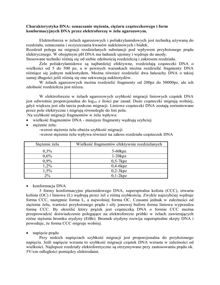 Charakterystyka DNA: oznaczanie stężenia, ciężaru