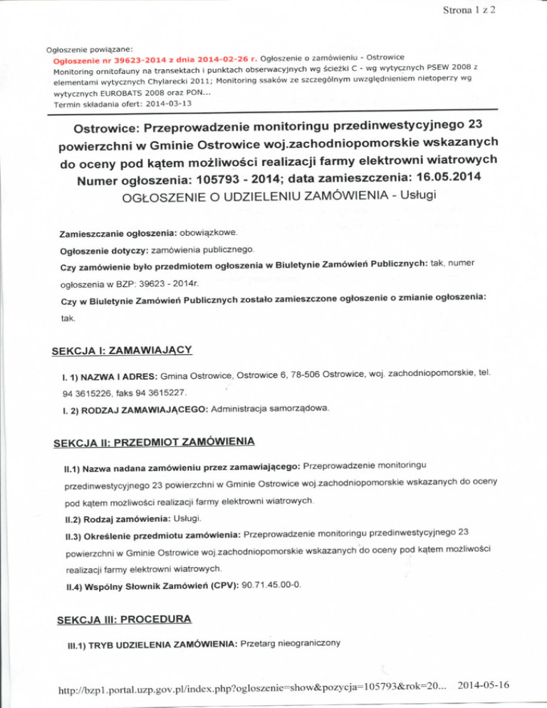 Numer ogfoszenia: 105793 - 2014; data zamleszczenia: 16.05.2014