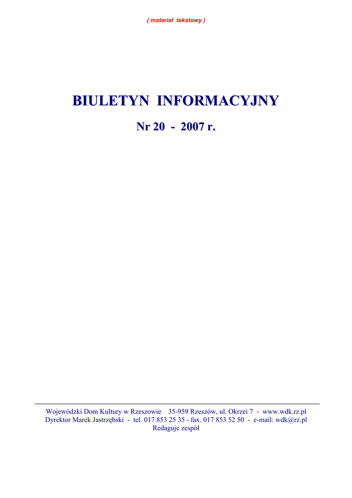 biuletyn informacyjny - Wojewódzki Dom Kultury w Rzeszowie