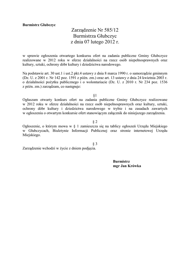Zarządzenie Nr 585-12 w spr. ogłoszenia