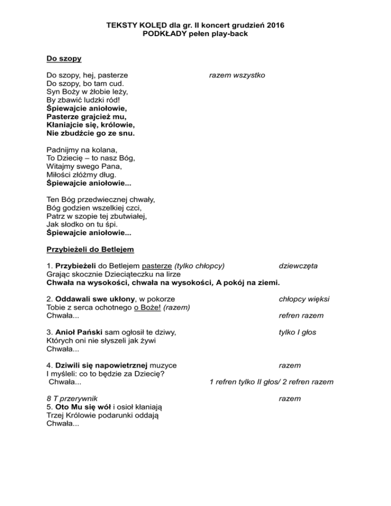 TEKSTY KOLĘD dla gr. II koncert grudzień 2016