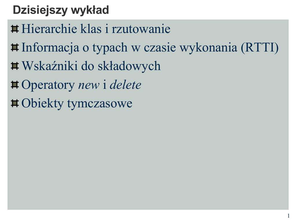 pochodnej) i rzutowania w górę (do klasy podstawowej) może występować