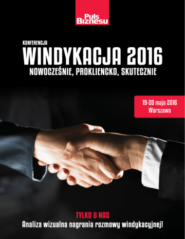 Szanowny Uczestniku, Skuteczne odzyskiwanie należności jest jednym z kluczowych elementów w procesie utrzymania i poprawy płynności finansowej w firmie. To stwierdzenie jest dla nas punktem wyjścia do dyskusji o tym jak ewoluuje znaczenie windykacji w obszarze budowania przewagi konkurencyjnej. Jako windykator, działasz dzisiaj nie tylko na płaszczyźnie odzyskiwania należności, ale także masz do spełnienia ważną rolę w realizacji strategii CSR w firmie, budowaniu jej wizerunku i kultury współpracy z dłużnikiem. To, między innymi, dzięki Tobie zaistniał na rynku trend proklienckiej windykacji i pojawiła się potrzeba rozważań o wprowadzeniu zmian do strategii kontaktowych tak, aby odpowiadały one realiom społecznym i standardom technologicznym zmieniającym się dzisiaj szczególnie dynamicznie. Jeżeli zależy Ci, aby podążać za aktualnymi trendami i budować optymalne modele procesów windykacyjnych, dołącz do nas 19 i 20 maja 2016, w Warszawie. Dzięki inspiracjom dostarczonym przez naszych prelegentów, praktycznym sesjom warsztatowym i dyskusjom w profesjonalnym gronie przy stołach eksperckich dowiesz się, jak odzyskiwać należności: √√ NOWOCZEŚNIE, czyli w oparciu o nową segmentację i przy wykorzystaniu nowych kanałów komunikacji i technologii √√ PROKLIENCKO, czyli poruszając się w ramach odpowiedzialnego biznesu i etycznej windykacji, realizując strategię experience design oraz budując kulturę współpracy z dłużnikiem jako klientem √√ SKUTECZNIE, czyli optymalizując strategię kontaktową i działając ze znajomością nowego otoczenia prawnego SPÓJRZ NA WINDYKACJĘ Z NOWEJ PERSPEKTYWY! Do zobaczenia w maju, Katarzyna Basaj-Pietrasz Project Manager, Puls Biznesu oraz Borys Sadowski Dyrektor Generalny, GEKKO Collections Organizator: Partner merytoryczny: Bonnier Business (Polska) sp. z o.o. należy do szwedzkiej Grupy Bonnier – jednego z największych na świecie koncernów medialnych posiadającego 175 firm w 16 krajach. Wydawca „Puls Biznesu” – najbardziej opiniotwórczego medium biznesowego, prowadzi również portale ekonomiczne pb.pl i bankier. pl, docierające łącznie do 3,5 miliona użytkowników. Bonnier Business (Polska) jest liderem w zakresie organizacji kongresów, konferencji i warsztatów skierowanych do wyższej kadry menedżerskiej. Kontakt: Tel 22 333 9777 Fax 22 333 97 78 E-mail [email protected] 19 MAJA 2016, CZWARTEK PROGRAM 09:00 Rejestracja uczestników, poranna kawa TRENDY I PERSPEKTYWY 09:30 DYSKUSJA PANELOWA Z UDZIAŁEM ZAPROSZONYCH EKSPERTÓW ORAZ UCZESTNIKÓW KONFERENCJI: Transformacja rynku i kierunki zmian - jakie strategie rozwoju bizesu sprawdzą się w perspektywie długofalowej Wśród panelistów: Piotr Badowski, Prezes Polskiego Związku Windykacji Przedstawiciel firmy Kruk S.A. w randze Członka Zarządu √√ √√ √√ √√ 11:30 Konsolidacja rynku - jakie zmiany wymusi, jakie korzyści i niebezpieczeństwo ze sobą niesie Kierunki rozwoju strategii windykacyjnych Nowe pokolenie dłużników vs. nowe pokolenie windykatorów - jak znaleźć wspólny język Optymalizacja strategii kontaktowych - jak zwiększyć docieralność do dłużników Przerwa na kawę DŁUŻNIK JAKO KLIENT 11:45 CSR w windykacji i windykacja prokliencka. Case study: Program Oddłużeniowy Klienta Mieszkaniowego w PKP S.A. Magdalena Polończyk, Dyrektor Departamentu Windykacji, PKP S.A. √√ √√ √√ √√ 12:45 Cel wdrożenia Programu Oddłużeniowego w PKP S.A Kluczowe zalety wynikające z przeprowadzenia Programu Action plan – czyli jak dobra organizacja pracy w trakcie projektu zapewnia sukces Badanie satysfakcji Klienta – dlaczego warto to robić/ wyniki. Experience design w windykacji. Projektowanie doświadczeń w procesie odzyskiwania należności. Borys Sadowski, Dyrektor Generalny, GEKKO Collections 19 MAJA 2016, CZWARTEK PROGRAM 13:45 Lunch 14:45 Konsultacje przy 3 stołach eksperckich - zapraszamy do dyskusji tematycznych. Formuła stołów eksperckich to udział w dyskusjach z ekspertem - każdy z Państwa może wybrać jeden ze stołów i wziąć udział w rozmowie na dany temat. Dzięki tej formule mogą Państwo wymienić opinie z pozostałymi uczestnikami oraz zadawać pytania ekspertowi. TECHNOLOGIE: PRAWO Prawnicy z kancelarii Rączkowski Kwieciński Adwokaci √√ BIG DATA w windykacji √√ narzędzia analityczne do badania zachowań dłużników itp. ZARZĄDZANIE PROCESAMI: Dominika Jachimowicz, Kierownik Zarządzania Jakością, Departament Windykacji √√ optymalne modele procesu windykacyjnego √√ Efektywne zarządzanie procesem reklamacyjnym - centralizacja czy separacja? 20 MAJA 2016, PIĄTEK PROGRAM 09:00 Rejestracja, poranna kawa NOWE WYZWANIA – NOWE ROZWIĄZANIA – 120% PRAKTYKI BLOK PRAWNY HR 2.0. Prawnicy z kancelarii Rączkowski Kwieciński Adwokaci 09:30 Otoczenie prawne wierzycieli w 2016 roku Michał Rączkowski – Wspólnik Zarządzający i Michał Kwieciński – Wspólnik Zarządzający √√ Zmiany w zakresie obliczania odsetek ustawowych i ustawowych za opóźnienie. Odsetki ustawowe za opóźnienie w transakcjach handlowych i możliwość dochodzenia zwrotu kosztów windykacji √√ Zmiany w ustawie o kosztach sądowych w sprawach cywilnych i rozporządzeniach regulujących minimalne stawki wynagrodzenia adwokatów i radców prawnych √√ Zmiany w postępowaniu egzekucyjnym √√ Prawa i obowiązki wynikające z Ustawy z dnia 5 sierpnia 2015 r. o rozpatrywaniu reklamacji przez podmioty rynku finansowego i o Rzeczniku Finansowym √√ Likwidacja b.t.e. i jej skutki - stosowanie alternatywnych form zabezpieczenia spłaty √√ EPU – problemy praktyczne i metody ich rozwiązywania 10:30 Duża nowelizacja K.C., K.P.C. i innych ustaw – rewolucja na rynku dochodzenia wierzytelności adw. Izabela Długołęcka – Górczyńska, koordynator Departamentu Odzyskiwania Należności, Jan Prasałek, ekspert ds. prawnych 09:30 Lean Ma