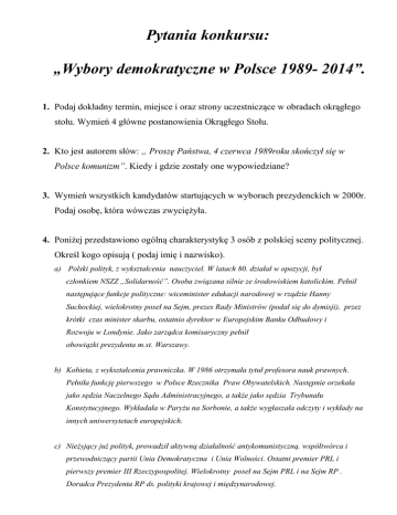 Pytania konkursu: „Wybory demokratyczne w Polsce 1989