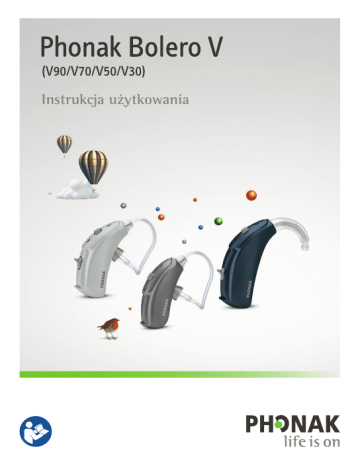 (V90/V70/V50/V30) Instrukcja użytkowania Niniejsza instrukcja użytkowania dotyczy następujących modeli: Modele bezprzewodowe Phonak Bolero V90-M Phonak Bolero V90-P Phonak Bolero V90-SP Phonak Bolero V70-M Phonak Bolero V70-P Phonak Bolero V70-SP Phonak Bolero V50-M Phonak Bolero V50-P Phonak Bolero V50-SP Phonak Bolero V30-M Phonak Bolero V30-P Phonak Bolero V30-SP CE przyznano 2015 2015 2015 2015 2015 2015 2015 2015 2015 2015 2015 2015 Informacje o Twoim aparacie Jeśli nic nie zostało zaznaczone i nie znasz modelu Twojego aparatu słuchowego, zapytaj swojego protetyka słuchu. Model c Bolero V-M c Bolero V-P c Bolero V-SP Rodzaj baterii 312 13 13 Wkładka/nakładka Nakładka lub SlimTip Klasyczna wkładka c c Gabinet protetyczny: 3 Twój aparat słuchowy został zaprojektowany przez firmę Phonak, jednego ze światowych liderów w dziedzinie technologii słyszenia z siedzibą w Zurychu w Szwajcarii. To urządzenie najwyższej jakości to wynik wielu lat badań i zdobytego doświadczenia i zostało zaprojektowane tak, byś mógł być w ciągłym kontakcie ze światem dźwięków. Dziękujemy za dokonanie tak trafnego wyboru i życzymy wielu lat czerpania radości ze słyszenia. Aby w pełni wykorzystać wszystkie możliwości aparatu słuchowego, zapoznaj się dokładnie z niniejszą instrukcją obsługi. Więcej informacji odnośnie funkcji i korzyści może udzielić Ci protetyk słuchu. Phonak – life is on www.phonak.pl Pobierz aplikację Phonak Support Aby zawsze pod ręką mieć indywidualną, interaktywną instrukcję użytkowania, pobierz aplikację Phonak Support na urządzenia mobilne. Więcej informacji na stronie: www.phonak.com/supportapp Spis treści 1. 2. 3. 4. 5. 6. 7. 8. 9. 10. 11. 12. 13. 14. 15. 16. Twój aparat słuchowy Skrócony poradnik Elementy aparatu słuchowego Korzystanie z aparatu słuchowego Oznaczenia lewego i prawego aparatu Włączanie/wyłączanie Baterie Zakładanie aparatu słuchowego Zdejmowanie aparatu słuchowego Przełącznik Regulator głośności Dalsze informacje Pielęgnacja i konserwacja Akcesoria bezprzewodowe Informacje o gwarancji Informacje o zgodności Informacje i objaśnienia symboli Rozwiązywanie problemów Informacje na temat bezpiecznego używania urządzenia 6 8 10 11 12 14 16 18 19 20 23 26 28 32 36 38 5 1. Skrócony poradnik Oznaczenia dla lewego i prawego aparatu Niebieskie oznaczenia dla lewego aparatu. Czerwone oznaczenia dla prawego aparatu. Bolero V-M Bolero V-P, V-SP Wymiana baterii Bolero V-M Bolero V-P & V-SP 1 2 Usuń nalepkę Otwórz komorę z nowej baterii. baterii. 6 3 Włóż baterię w taki sposób, aby widoczny był na niej symbol “+”. Włączanie/wyłączanie Wł. Wył. Przełącznik Przełącznik aparatu słuchowego może mieć różne funkcje. Regulator głośności Tylko modele Bolero V-P oraz V-SP: Aby zwiększyć głośność, pchnij regulator głośności w górę. Aby zmniejszyć głośność, pchnij regulator głośności w dół. 7 2. Elementy aparatu słuchowego Obrazki poniżej pokazują modele opisane w niniejszej istrukcji użytkowania. Możesz na nich ropoznać swój aparat słuchowy przez: • sprawdzenie “Informacji o Twoim aparacie” - strona 3. • porównanie Twojego aparatu z pokazanymi modelami. Zwróć uwagę na kształt aparatu słuchowego i obecność regulatora głośności. Dostępne władki/nakładki Nakładka 8 SlimTip Klasyczna wkładka Bolero V-M Przełącznik Dźwiękowód Komora baterii Nakładka (zdejmowalna) Element podtrzymujący Modele: Bolero V-P oraz V-SP Rożek/ wyjście dźwięku Przełącznik Regulator głośności Komora baterii Klasyczna wkładka (zdejmowalna) 9 3. Oznaczenia lewego i prawego aparatu Dzięki oznaczeniom - niebieskim i czerwonym, możesz sprawdzić czy jest to lewy czy prawy aparat słuchowy. Niebieskie oznaczenia dla lewego aparatu. Bolero V-M 10 Bolero V-P, V-SP Czerwone oznaczenia dla prawego aparatu. 4. Włączanie/wyłączanie Zamykając lub otwierając komorę baterii, włączasz lub wyłączasz aparat słuchowy. 1 Zamknięta komora baterii = aparat słuchowy włączony 2 Otwarta komora baterii = aparat słuchowy wyłączony Kiedy włączysz aparat słuchowy możesz usłyszeć melodię. 11 5. Baterie Bolero V-M Bolero V-P & V-SP 1 2 Usuń nalepkę z nowej baterii. 3 Otwórz komorę Włóż baterię w taki baterii. sposób, aby widoczny był na niej symbol “+”. Jeśli nie możesz zamknąć komory baterii sprawdź czy jest odpowiednio włożona - widać symbol “+”. Jeśli bateria nie jest odpowiednio włożona, aparat słuchowy nie będzie działał, a komora baterii może się uszkodzić. Kiedy jest niski poziom baterii usłyszysz dwa sygnały bip. Masz około 30 minut na wymianę baterii (w zależności od ustawień aparatu słuchowego i rodzaju baterii). Zalecamy, byś zawsze miał nową baterię przy sobie. 12 Wymiana baterii Ten aparat słuchowy wykorzystuje baterie cynkowopowietrzne. Sprawdź rozmiar baterii (312 lub 13) przez: • sprawdzenie “Informacji o Twoim aparacie” - strona 3 • sprawdzenie oznaczeń wewnątrz komory baterii • sprawdzenie w poniższej tabeli: Model Phonak Bolero V-M V-P, V-SP Rozmiar batterii Kolor Kod oznaczenia na IEC opakowaniu Kod ANSI 312 13 brązowy PR41 pomarańczowy PR48 7002ZD 7000ZD Zawsze upewnij się, że używasz w swoim aparacie słuchowym odpowiedniego rodzaju baterii (cynkowo-powietrzne). Przeczytaj także rozdział 16.2, by dowiedzieć się więcej o bezpiecznym używaniu urządzenia. 13 6. Zakładanie aparatów słuchowych 6.1 Zakładanie aparatu z klasyczną wkładką 1 Unieś wkładkę do ucha i umieść część kanałową wkładki indywidualnej w przewodzie słuchowym. 2 Umieść aparat słuchowy za uchem. 3 Umieść górną część wkładki indywidualnej w górnej części zagłębienia małżowiny. 14 6.2 Zakładanie aparatu z nakładką lub SlimTip 1 Umieść aparat słuchowy za uchem. 2 Umieść część kanałową nakładki lub wkładki SlimTip w przewodzie słuch