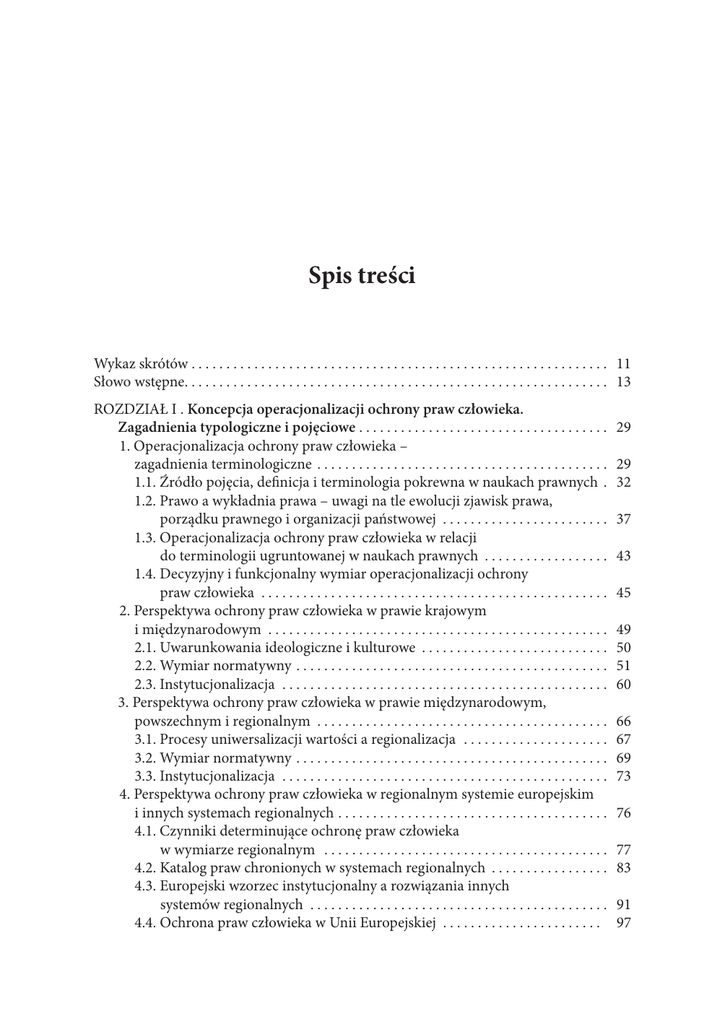 Spis treści Wykaz skrótów. . . . . . . . . . . . . . . . . . . . . . . . . . . . . . . . . . . . . . . . . . . . . . . . . . . . . . . . . . . . . 11 Słowo wstępne. . . . . . . . . . . . . . . . . . . . . . . . . . . . . . . . . . . . . . . . . . . . . . . . . . . . . . . . . . . . . . 13 ROZDZIAŁ I . Koncepcja operacjonalizacji ochrony praw człowieka. Zagadnienia typologiczne i pojęciowe. . . . . . . . . . . . . . . . . . . . . . . . . . . . . . . . . . . . . 1. Operacjonalizacja ochrony praw człowieka – zagadnienia terminologiczne . . . . . . . . . . . . . . . . . . . . . . . . . . . . . . . . . . . . . . . . . . . 1.1. Źródło pojęcia, definicja i terminologia pokrewna w naukach prawnych . . 1.2. Prawo a wykładnia prawa – uwagi na tle ewolucji zjawisk prawa, porządku prawnego i organizacji państwowej . . . . . . . . . . . . . . . . . . . . . . . . . 1.3. Operacjonalizacja ochrony praw człowieka w relacji do terminologii ugruntowanej w naukach prawnych . . . . . . . . . . . . . . . . . . . 1.4. Decyzyjny i funkcjonalny wymiar operacjonalizacji ochrony praw człowieka . . . . . . . . . . . . . . . . . . . . . . . . . . . . . . . . . . . . . . . . . . . . . . . . . . . 2. Perspektywa ochrony praw człowieka w prawie krajowym i międzynarodowym . . . . . . . . . . . . . . . . . . . . . . . . . . . . . . . . . . . . . . . . . . . . . . . . . . 2.1. Uwarunkowania ideologiczne i kulturowe . . . . . . . . . . . . . . . . . . . . . . . . . . . . 2.2. Wymiar normatywny . . . . . . . . . . . . . . . . . . . . . . . . . . . . . . . . . . . . . . . . . . . . . . 2.3. Instytucjonalizacja . . . . . . . . . . . . . . . . . . . . . . . . . . . . . . . . . . . . . . . . . . . . . . . . 3. Perspektywa ochrony praw człowieka w prawie międzynarodowym, powszechnym i regionalnym . . . . . . . . . . . . . . . . . . . . . . . . . . . . . . . . . . . . . . . . . . . 3.1. Procesy uniwersalizacji wartości a regionalizacja . . . . . . . . . . . . . . . . . . . . . . 3.2. Wymiar normatywny . . . . . . . . . . . . . . . . . . . . . . . . . . . . . . . . . . . . . . . . . . . . . . 3.3. Instytucjonalizacja . . . . . . . . . . . . . . . . . . . . . . . . . . . . . . . . . . . . . . . . . . . . . . . . 4. Perspektywa ochrony praw człowieka w regionalnym systemie europejskim i innych systemach regionalnych . . . . . . . . . . . . . . . . . . . . . . . . . . . . . . . . . . . . . . . . 4.1. Czynniki determinujące ochronę praw człowieka w wymiarze regionalnym . . . . . . . . . . . . . . . . . . . . . . . . . . . . . . . . . . . . . . . . . . 4.2. Katalog praw chronionych w systemach regionalnych . . . . . . . . . . . . . . . . . . 4.3. Europejski wzorzec instytucjonalny a rozwiązania innych systemów regionalnych . . . . . . . . . . . . . . . . . . . . . . . . . . . . . . . . . . . . . . . . . . . . 4.4. Ochrona praw człowieka w Unii Europejskiej . . . . . . . . . . . . . . . . . . . . . . . . 29 29 32 37 43 45 49 50 51 60 66 67 69 73 76 77 83 91 97 8 Spis treści 4.5. Podsumowanie . . . . . . . . . . . . . . . . . . . . . . . . . . . . . . . . . . . . . . . . . . . . . . . . . . 102 5. Siatka typów operacjonalizacji ochrony praw człowieka . . . . . . . . . . . . . . . . . . 104 ROZDZIAŁ II. Złożoność struktury i uwarunkowania ochrony praw człowieka w systemie Rady Europy jako czynnik różnicujący rodzaje operacjonalizacji ochrony praw człowieka . . . . . . . . . . . . . . . . . . . . . . . . . . . . . . . . . . . . . . . . . . . . . . . 1. Rada Europy jako wyspecjalizowana organizacja regionalna . . . . . . . . . . . . . . 1.1. Powstanie i cele Rady Europy . . . . . . . . . . . . . . . . . . . . . . . . . . . . . . . . . . . . . 1.2. Kryteria członkostwa państw w Radzie Europy . . . . . . . . . . . . . . . . . . . . . . 2. Subsydiarność europejskiego systemu ochrony praw człowieka. . . . . . . . . . . . 2.1. Zasada subsydiarności w prawie krajowym i międzynarodowym – założenia ideologiczne i ewolucja treści . . . . . . . . . . . . . . . . . . . . . . . . . . . . 2.2. Podstawy normatywne zasady subsydiarności . . . . . . . . . . . . . . . . . . . . . . . 2.3. Podstawy orzecznicze zasady subsydiarności . . . . . . . . . . . . . . . . . . . . . . . . 3. System Europejskiej Konwencji Praw Człowieka . . . . . . . . . . . . . . . . . . . . . . . . . 3.1. Zagadnienia wprowadzające . . . . . . . . . . . . . . . . . . . . . . . . . . . . . . . . . . . . . . 3.2. Koncepcja normatywnej budowy Europejskiej Konwencji Praw Człowieka . . . . . . . . . . . . . . . . . . . . . . . . . . . . . . . . . . . . . . . . . . . . . . . . 3.3. Zakres normatywności i stosowanie materialnych postanowień Europejskiej Konwencji Praw Człowieka a operacjonalizacja ochrony praw człowieka . . . . . . . . . . . . . . . . . . . . . . . . . . . . . . . . . . . . . . . . . . . . . . . . . 3.4. Zakres normatywności i stosowanie materialnych postanowień EKPC przez Europejski Trybunał Sprawiedliwości . . . . . . . . . . . . . . . . . . . . . . . . . 4. System Europejskiej Karty Społecznej . . . . . . . . . . . . . . . . . . . . . . . . . . . . . . . . . 4.1. Koncepcja normatywnej budowy i zakres zobowiązań z Europejskiej Karty Społecznej . . . . . . . . . . . . . . . . . . . . . . . . . . . . . . . . . . . 4.2. Zakres normatywności i stosowanie materialnych postanowień Europejskiej Karty Społecznej a operacjonalizacja ochrony praw człowieka. . . . . . . . . . . . . . . . . . . . . . . . . . . . . . . . . . . . . . . . . . . . . . . . . . . 5. Pozostałe konwencje przyjęte w ramach Rady Europy . . . . . . . . . . . . . . . . . . . . . 6. Ewolucja systemu wartości na poziomie państw i społeczeństw Rady Europy . . . . . . . . . . . . . . . . . . . . . . . . . . . . . . . . . . . . . . . . . . . . . . . . . . . . . . . . 6.1. Aspekt instytucjonalno-prawny europejskiego systemu ochrony praw człowieka . . . . . . . . . . . . . . . . . . . . . . . . . . . . . . . . . . . . . . . . . . . . 