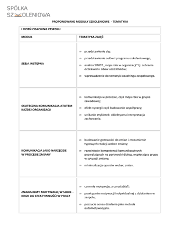 PROPONOWANE MODUŁY SZKOLENIOWE