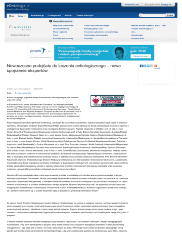 Zarejestruj się Blog Działy Konferencje Czasopisma Książki Masz już konto? Zaloguj się Temat miesiąca Wszystkie kategorie Partner strategiczny Wsparcie żywieniowe Układ moczowo-płciowego Mięsaki tkanek miękkich, kości i GIST Gruczoł krokowy Narządy głowy i szyi Terapia wspomagająca Płuco i opłucna Gruczoły wydzielania wewnętrznego Inne Pierś Ginekologia onkologiczna Hematologia Przewód pokarmowy Czerniak Leczenie bólu Nowoczesne podejście do leczenia onkologicznego – nowe spojrzenie ekspertów Źródło: www.onkomapss.pl | 02.04.2015 Dział: Z życia środowiska Koniec ubiegłego tygodnia minął w środowisku onkologicznym pod znakiem organizowanej w Poznaniu przez przez Wydawnictwo Termedia 7-ej Międzynarodowej Konferencji Współczesnej Onkologii, znanej na arenie międzynarodowej pod nazwą „7th International Conference of Contemporary Oncology: Personalized Cancer Medicine and Big Data Analysis” Program wydarzenia wypełniały sesje z obszarów biologii i epigenetyki nowotworów, poszukujące odpowiedzi na pytania, co zrobić, by diagnozowanie i leczenie w onkologii było zintegrowane i bardziej efektywne. Przed rozpoczęciem obrad głównych konferencji, otwartych dla wszystkich uczestników, wybrani specjaliści wzięli udział w elitarnym spotkaniu „Oncompass Medicine Expert Meeting 2015th” poświęconym ważnej dyskusji na temat personalizacji leczenia w oparciu o wielogenową diagnostykę molekularną oraz rozwiązania bioinformatyczne. Kapituła ekspercka w składzie: prof. dr hab. n. med. Cezary Szczylik z Warszawskiego Wojskowego Instytutu Medycznego, prof. dr hab. Bożena Kamińska-Kaczmarek z Instytutu Biologii Doświadczalnej Polskiej Akademii Nauk, dr n. med. Janusz Kocik z Wojskowego Instytutu Higieny i Epidemiologii w Warszawie, dr hab. n. med. Dariusz Iżycki z Zakładu Immunologii Nowotworów Uniwersytetu Medycznego im. Karola Marcinkowskiego w Poznaniu, prof. dr hab. n. med. Lucjan Wyrwicz Kliniki Gastroenterologii Onkologicznej Centrum Profilaktyki Nowotworów Centrum Onkologii – Instytut im. Marii Skłodowskiej – Curie w Warszawie, dr n. med. Piotr Tomczak z Katedry i Kliniki Onkologii Uniwersytetu Medycznego im. Karola Marcinkowskiego w Poznaniu oraz reprezentanci współorganizatora konferencji –Wielkopolskiego Centrum Onkologii– prof. dr hab. n med. Andrzej Mackiewicz oraz dr hab. n. med. Dawid Murawa, dyskutowała, jaka wiedza i aktywności mogłoby nadać kierunek przydatnym zmianom w nowoczesnym podejściu do leczenia onkologicznego. Najważniejszym wnioskiem z rozważań był fakt, iż niezbędna jest wielokierunkowa edukacja lekarzy w zakresie wykorzystania medycyny molekularnej. Prof. Bożena Kamińska– Kaczmarek, Dyrektor Środowiskowego Studium Medycyny Molekularnej przy Warszawskim Uniwersytecie Medycznym, zaapelowała, iż potrzebna jest ścisła współpraca pomiędzy onkologami a diagnostami molekularnymi. Jej zdaniem pomocne dla całego systemu byłoby wprowadzenie programu szkoleń z zakresu interpretacji wyników molekularnych dla lekarzy onkologów oraz studentów medycyny, aby potrafili w przyszłości posługiwać się otrzymanymi wynikami. Gremium Ekspertów podjęło także próbę wypracowania podstaw umożliwiających szerokie wykorzystanie w polskiej praktyce onkologicznej serwisu Oncompass. Wzięto pod uwagę dwuetapowe działanie kompasu onkologicznego: koncentrację na rzetelnym wykonaniu diagnostyki wielogenowej, a następie dostęp do unikalnej informacji o dostępnych opcjach terapii celowanych na całym świecie skorelowanych w profilem molekularnym danego pacjenta. Eksperci wspólnie przyznali, że diagnostyka molekularna jest osiągnięciem podstawowym i zasadniczym. Podsumował to prof. Andrzej Mackiewicz z Komitetu Organizatora wydarzenia mówiąc, że: „badania molekularne są, a przede wszystkim będą w przyszłości, podstawą różnorakich terapii.” Dr Janusz Kocik, Dyrektor Wojskowego Instytutu Higieny i Epidemiologii, na pytanie o najlepszy moment, w którym pacjenci i lekarze winni rozważać skorzystanie z informacji dostarczanej przez Oncompass, dodał, że punktem wyjścia winna być zawsze dogłębna analiza sytuacji pacjenta i określenie, czemu nowa wiedza płynąca z Raportu dostarczanego przez serwis miałaby służyć. Jego zdaniem z zastosowania wielogenowej diagnostyki molekularnej oraz rozwiązań bioinformatycznych potencjalnie mogą skorzystać ci pacjenci, u których niewiele wiadomo na temat dostępnych opcji leczenia, czyli osoby z tak zwanymi „sierocymi” (rzadko występującymi) nowotworami. Inny profil beneficjenta to pacjent, który został przeleczony wszystkimi dostępnymi metodami o udokumentowanej wiarygodności i cały czas jest w stanie i ma wolę, żeby leczyć się dalej. Informacja może wnieść do procesu decyzyjnego nową jakość, gdy istnieje wiele opcji leczenia farmakologicznego, a tę spersonalizowaną wybiera się dostosowując ją do stanu pacjenta, więcej chorób współistniejących i spodziewanych objawów bocznych, a także – niestety – do sytuacji socjoekonomicznej. W chwili obecnej serwis Oncompass pracuje nad otworzeniem polskich ośrodków referencyjnych, które będą prowadzić zainteresowanych pacjentów i pomagać im w realizacji indywidualnej ścieżki terapeutycznej. Więcej informacji na www.oncompass.pl Strona główna Kontakt Konferencje Nota prawna Książki Polityka prywatności Redaktor naczelny: dr n. med. Jacek Mackiewicz - Oddział Onkologii Klinicznej i Doświadczalnej, Szpital Kliniczny im. H Święcickiego Uniwersytetu Medycznego w Poznaniu 2. Katedra Biologii i Ochrony Środowiska Uniwersytet Medyczny w Poznaniu Redaktor prowadzący: lek. med. Katarzyna Szyszka-Barth - Oddział Chemioterapii, Klinika Onkologii Uniwersytetu Medycznego im. Karola Marcinkowskiego w Poznaniu © 2015 Termedia Sp. z o.o. All rights reserved. Created by Bentus