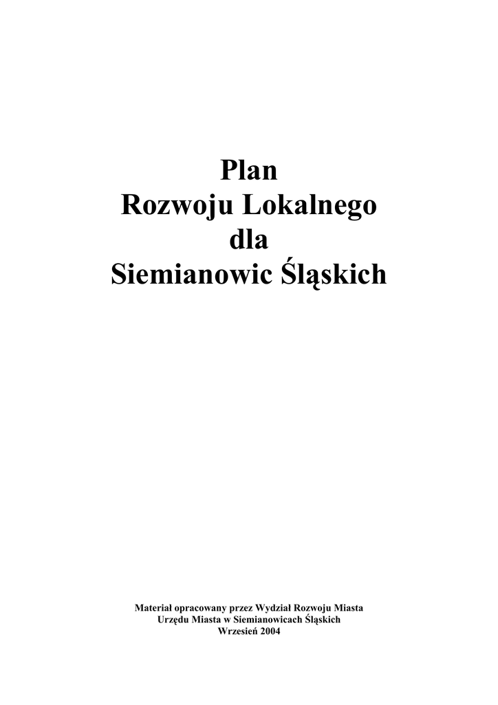 Plan Rozwoju Lokalnego dla Siemianowic Śląskich
