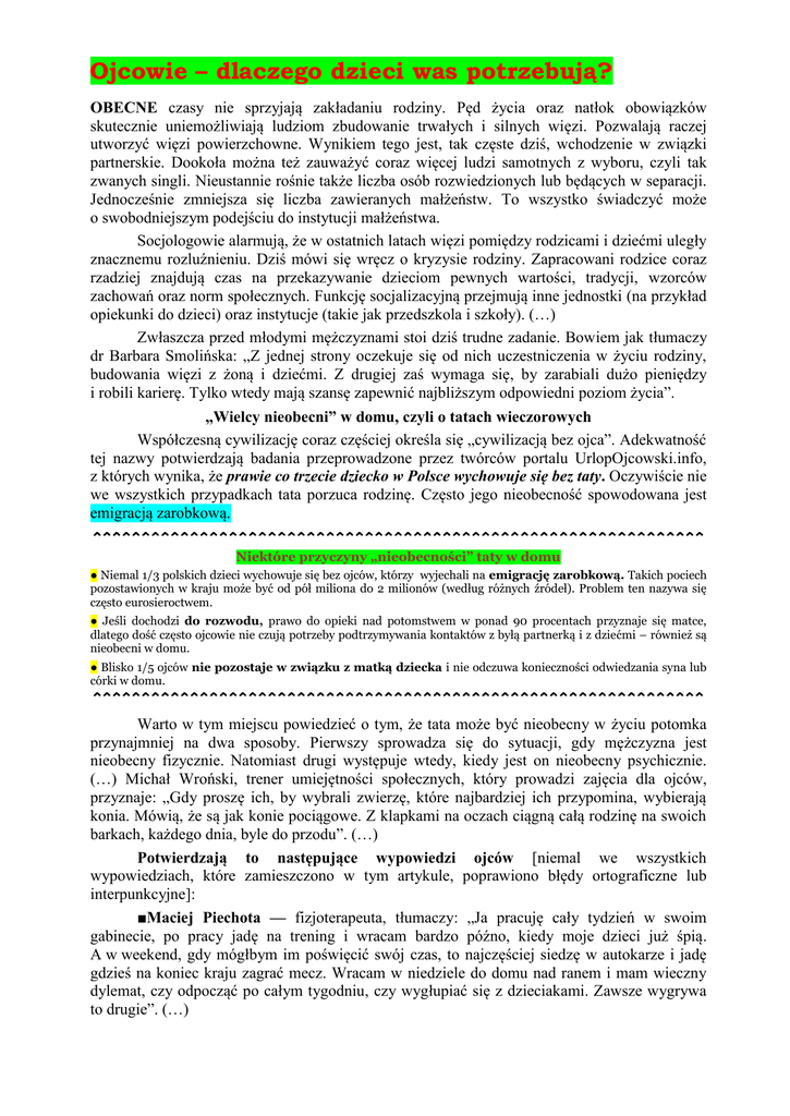 Artykuł "Ojcowie - dzieci was potrzebują"