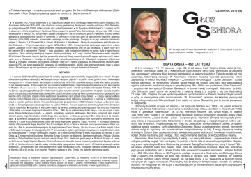 z Polakami w ekipie – chce kontynuować swój program Six Summit Challenge, Aleksander (Olek) Ostrowski i Piotr Śnigórski planują zjazd na nartach z Gasherbruma II. CZERWIEC 2015 (6) LUDZIE W tygodniku PAU „PAUza Akademicka” z 21 maja (nr 298) ukaza³o siê b. interesuj¹ce wspomnienie Adama Korpaka o prof. Stanis³awie Siedleckim (1912–2002), jako o badaczu budowy geologicznej Skandynawii i w ogóle podró¿niku. Prof. Siedleckiego po¿egnaliœmy w GS 3/2002. Artyku³ przys³a³ nam Antoni G¹siorowski. ● W „Tygodniku Podhalañskim” z 3 czerwca (nr 23) w obszernym artykule biograficznym Apoloniusz Rajwa przypomina postaæ Piotra Malinowskiego, który w maju 1995 r. zmar³ niespodzianie w wieku 51 lat, po rutynowym zabiegu chirurgicznym. Ma on symboliczny grób na Pêksowym Brzyzku, bowiem jego prochy zosta³y z³o¿one w Tatrach. W numerze z 11 czerwca (nr 24) ten sam autor na ca³ej kolumnie wspomina Tadeusza Giewonta (1915–1999), ratownika, przewodnika i wybitnego muzyka góralskiego. Dodajmy, ¿e do jego partnerów tatrzañskich nale¿eli Z. Paryska, J. K. Dorawski, W. H. Paryski, M. Korowicz, J. Hajdukiewicz. Okazj¹ do przypomnienia jest 100-lecie urodzin Tadeusza. ● W ¿ywo redagowanym organie KWW „A/Zero” 1/2014 Andrzej Spycha³a zamieszcza wspomnienie o Janie £¹ckim „Aligatorze” (1939–1995). Pêdzi³ on barwne, wrêcz awanturnicze ¿ycie, przy tym jak siê okazuje, w latach 1965–1974 by³ agentem SB o pseudonimie „Talimak” – ma³o szkodliwym, gdy¿ nastawionym g³ównie na pomoc s³u¿b w zagranicznych wyjazdach. Zmar³ œmierci¹ samobójcz¹, trapiony chorob¹ alkoholow¹. ● 17 maja zmar³ w Zakopanem w wieku niespe³na 85 lat Edward Miranowski, taternik, alpinista, przewodnik tatrzañski I klasy, uczestnik prawie 20 wypraw alpinistycznych i naukowych, m.in. w Hindukusz, w Himalaje, do Mongolii. Jako ratownik uczestniczy³ w ok. 100 akcjach i wyprawach. (Apoloniusz Rajwa) ● Pami¹tki i archiwalia po Erhardzie Loretanie (1959–2011) rodzina przekaza³a do Szwajcarskiego Muzeum Alpejskiego (ALPS). Jest w tym zespole 200 kg sprzêtu, 40 notatników górskich, 30 000 zdjêæ wykonanych przez niego w górach œwiata. Erhard wspina³ siê te¿ z partnerami polskimi i uczestniczy³ w naszych festiwalach filmowych. ● NOTATKI ● 5 czerwca 2015 Andrzej Piekarczyk œwiêci³ 76. urodziny na po³udniowym wierzcho³ku Aragaca (3800 m) w Armenii. W wyjeŸdzie uczestniczy³ Marek Janas (81). ● Cieszê siê nowym zeszytem „Alpinist” – to ju¿ 50. numer (golden issue). Ciekawa jest monografia Dru – 16 bitych kartek. Na razie jest to czêœæ za lata 1878–1955, na polskie wyczyny trzeba wiêc bêdzie poczekaæ. U nas niewiele nowego. W maju uda³o nam siê powspinaæ w West Virginii i nawet poprowadziæ pierwsze w tym roku nowoœci w Meadow. (Rudaw Janowic) ● Rankiem 5 czerwca trzêsienie ziemi o sile 6.0 nawiedzi³o rejon szczytu Kinabalu (4095 m) na Borneo, najwy¿szej góry Malezji. Ze 137 obecnych na górze turystów górskich i przewodników 18 zginê³o. Zawali³a siê jedna z turni charakterystycznej dwoistej ska³y zwanej Oœlimi Uszami. Wzorowo spisali siê lokalni przewodnicy, którzy sprowadzili z góry klientów mimo zniszczenia szlaków i mimo wiadomoœci, ¿e w dolinach sami potracili domy i bliskich. ● Czescy wspinacze Marek Holeèek i Tomaš Petreèek planuj¹ dokoñczenie nowej drogi lew¹ stron¹ SW œciany Gasherbruma I, na której w r. 2009 Holeèek straci³ w wypadku partnera, Zdenka Hrubego. Œcianê przeszli jako pierwsi w r. 1983 Kukuczka i Kurtyka. ● S³oweniec Luka Lindiè z 3 kolegami planuje wejœcie od pó³nocy na Latok I (7145 m). Ten sam szczyt jest celem Amerykanów Kyle Dempstera i Scotta Adamsona. ● 9 czerwca w Warszawie odby³a siê pierwsza projekcja anonsowanego przez nas filmu Elizy Kubarskiej „Bli¿ej nieba” – na kanwie tragicznych zdarzeñ na K2 w r. 1986. By³ na pokazie Jerzy Sudel, który – a zna siê na tym – zapowiada filmowi festiwalowe nagrody. ● Legenda brytyjskiego wspinania ska³kowego, Ben Moon, przeszed³ jako czwarty cz³owiek g³oœn¹ drogê Rainshadow. Jest to drugie 9a w jego ¿yciu – w 25 lat po pierwszym! Ben dobija obecnie do piêædziesi¹tki. ● 22 kwietnia Szwajcar Dani Arnold poprawi³ o 10 minut rekord czasu przejœcia drogi Schmidów na Matterhornie, ustanowiony w r. 2009 przez Uelego Stecka. Szed³ free solo a wspinaczka zajê³a mu 1 godz. 46 minut. ● 30 maja 2015 Mateusz Ha³adaj (29) poprowadzi³ drogê „Papichulo” (9a+/5.15a, d³ugoœæ 45 m) w Olianie w Hiszpanii, pokonuj¹c jako pierwszy Polak trudnoœci 9a+. By³o to zarazem siódme przejœcie tej drogi (autorstwa Chrisa Sharmy). (Rudaw Janowic) ● Polski Instytut Kultury w Sofii regularnie siêga po tematykê górsk¹. 16 i 17 czerwca odby³o siê tam ogólnobu³garskie spotkanie z okazji 60-lecia I wejœcia na Kangchendzöngê – z filmami i prelekcjami. Dodajmy, ¿e w kwietniu zmar³ w Anglii w wieku 90 lat lekarz tej wyprawy, dr John Clegg. ● Z rozegranych w Edynburgu Mistrzostw Europy Juniorów we Wspinaniu Sportowym lublinianka Patrycja Chudziak wróci³a ze Z³otym Medalem i tytu³em mistrzyni juniorów Europy 2015. Serdecznie gratulujemy! ● W dniach 30 maja – 1 czerwca 2015 Janusz Go³¹b, Wojciech Grzesiok i Andrzej ¯yczkowski dokonali z dwoma biwakami przejœcia drogi Cassina na Denali (6194 m). (Rudaw Janowic) ● Jak poda³y chiñskie s³u¿by topograficzne, trzêsienie ziemi z 25 kwietnia przesunê³o czubek Everestu o 3 cm w kierunku SW, czyli przeciwnym do sta³ej migracji góry ku NE. W ostatniej dekadzie czubek przesun¹³ siê w kierunku NE o 40 cm (po 4 cm rocznie). Powtórne wstrz¹sy z dnia 12 maja nie dotknê³y wierzcho³ka szczytu. 4 Redakcja i teksty (z wyjątkiem osobno sygnowanych): Józef Nyka, ul. Klaudyny 12 m 79; 01-684 Warszawa. Tel. [48] 22-833-07-75; e-mail <[email protected]>. P.T. Seniorzy proszeni są o współpracę. Pisemko rozprowadza