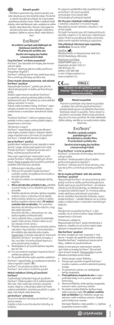 EvoTears® Ke zvlhčení suchých podrážděných očí Stabilizace slzného filmu Při příznacích suchého oka Sterilní oční kapky bez fosfátů a konzervačních látek Co je EvoTears® a k čemu se používá? EvoTears® jsou bezvodé oční kapky bez konzervačních látek. EvoTears® obsahuje jedinou složku perfluorohexyloktan (EyeSol®). EvoTears® zvlhčuje povrch oka, stabilizuje slzný film a zmírňuje příznaky suchého oka. Čemu musíte věnovat pozornost, než začnete EvoTears® používat ® Nepoužívejte EvoTears , jestliže jste přecitlivělý/á (alergický/á) na složku perfluorohexyl oktan. ® Zvláštní opatrnosti při používání EvoTears je zapotřebí, pokud používáte ještě jiné léky aplikované do oka. Při aplikaci je nutno dodržet odstup nejméně 15 minut. Pokud nosíte kontaktní čočky, EvoTears® nepoužívejte, protože není znám dostatek údajů o snášenlivosti s materiálem kontaktních čoček. Děti: Používání EvoTears® u dětí se nedoporučuje, protože k němu nejsou známy žádné údaje o bezpečnosti a účinnosti. Po uplynutí vytištěného data použitelnosti ( se EvoTears® již nesmí používat. Uchovávejte mimo dosah dětí. Uchovávejte při pokojové teplotě. Na trhu jsou následující velikosti balení: 1 lahvička s obsahem 3 ml očních kapek. Neprodejný vzorek: lahvička s obsahem 1 ml očních kapek. Pro lepší manipulaci jsou oční kapky plněny do lahviček o objemu 5 ml, které jsou naplněny jen zčásti. Plnění se provádí pod stálou kontrolou, takže menší naplnění lahvičky je vyloučeno. Tato příbalová informace byla naposledy revidována: Červenec 2016 Výrobce ( ): Novaliq GmbH, Im Neuenheimer Feld 515, 69120 Heidelberg, Německo Distributor pro Česko: URSAPHARM spol. s r.o. Kubánské náměstí 1391/11 100 00 Praha 10 telefon: 295 560 468 e-mail: [email protected] www.ursapharm.cz 0483 Váš názor na náš výrobek je pro nás důležitý! Těšíme se na Vaše písemné nebo telefonické podněty. Návod na použitie Pozorne si prečítajte celý návod na použitie, predtým ako začnete používať EvoTears®, pretože obsahuje pre vás dôležité informácie. Dodržujte návod na použitie. Tento návod na použitie si uschovajte. Možno bude potrebné, aby ste si ho znovu prečítali. Ak máte akékoľvek ďalšie otázky, obráťte sa na svojho lekára alebo lekárnika. Těhotenství a kojení: EvoTears® nepoužívejte, pokud jste těhotná nebo kojíte, protože nejsou k dispozici žádné údaje o bezpečnosti a účinnosti při používání ® EvoTears v období těhotenství a kojení. Jak se EvoTears® používá Jestliže lékař nedoporučí jinak, kápněte si 4krát denně 1 kapku do oka pod spodní oční víčko. ® Protože EvoTears neobsahuje konzervační látky, můžete jej používat denně. Díky svým výjimečným vlastnostem se přípravek EvoTears® odlišuje od běžných očních kapek. Proto si prosím před použitím podrobně pročtěte informace pro uživatele. 1. Odšroubujte z lahvičky uzávěr. 2. Před prvním použitím kapek EvoTears® uvolněte uzávěr od zajišťovacího kroužku a kroužek odstraňte. 3. Po sejmutí uzávěru se nedotýkejte špičky kapátka. 4. Dříve než lahvičku přiložíte k oku, přečtěte si prosím body 5 a 6 a následně tyto kroky proveďte. 5. Přidržte otevřenou lahvičku špičkou kapátka směrem vzhůru a lahvičku mírně stlačte. 6. Držte lahvičku stlačenou a přitom ji otočte špičkou kapátka směrem dolů. Při otáčení uvolněte tlak na lahvičku. Tím pronikne tekutinou do lahvičky trocha vzduchu. Uslyšíte slabé zašumění. Ponechte lahvičku v této poloze, tzn. aby špička kapátka směřovala dolů. 7. Lehce zakloňte hlavu a opatrně odtáhněte spodní víčko od oka. Pokud možno se přitom dívejte mírně nahoru. 8. Přidržte otočenou otevřenou lahvičku kolmo nad okem. Nyní lahvičku mírně stiskněte a do každého oka kápněte jednu kapku. Upozornění: Z důvodu speciálních vlastností ® přípravku EvoTears je možné, že kapku v oku neucítíte. Pro tento případ doporučujeme použití před zrcadlem. 9. Nedotýkejte se při použití špičkou kapátka oka ani řas. 10. Pro rovnoměrné rozptýlení kapek EvoTears® zavřete po aplikaci oči. 11. Po použití lahvičku opět uzavřete uzávěrem. EvoTears® nepoužívejte, je-li poškozena lahvička nebo originální uzávěr ( ). EvoTears® lze používat po dobu 30 dnů. EvoTears® není určen k vnitřnímu použití. Možné nežádoucí účinky při používání EvoTears® V jednotlivých případech bylo při používání EvoTears® hlášeno pálení očí či svědivé podráždění oka. Toto může být známkou alergické reakce. Když se u Vás projeví pálení očí nebo svědivé podráždění, ukončete používání a vyhledejte radu lékaře nebo lékárníka. Jak EvoTears® uchovávat Po prvním otevření lahvičky lze EvoTears® používat 6 měsíce. Zapište si datum prvního otevření lahvičky na krabičku. ) EvoTears® Použitie v prípade suchých, podráždených očí Na stabilizáciu slzného filmu Pri príznakoch suchého oka Sterilné očné kvapky bez fosfátov a konzervačných látok Čo je EvoTears® a na čo sa používa ® EvoTears sú bezvode očné kvapky, bez konzervačných látok. EvoTears® obsahuje jedinú účinnú zložku ® perfluorohexyloctane (EyeSol ). ® EvoTears zvlhčuje povrch očnej rohovky, ustaľuje slzný film a zmierňuje príznaky suchého oka. Na čo musíte prihliadať , skôr ako začnete EvoTears® používať ® Nepoužívajte EvoTears ak ste precitlivený (alergický) na účinnú zložku perfluorohexyloctane. Buďte opatrný pri použití EvoTears®, ak súčasne užívate aj iné očné prípravky, vo všeobecnosti sa odporúča dodržať aspoň 15 minútový odstup medzi aplikáciou jednotlivých prípravkov. 