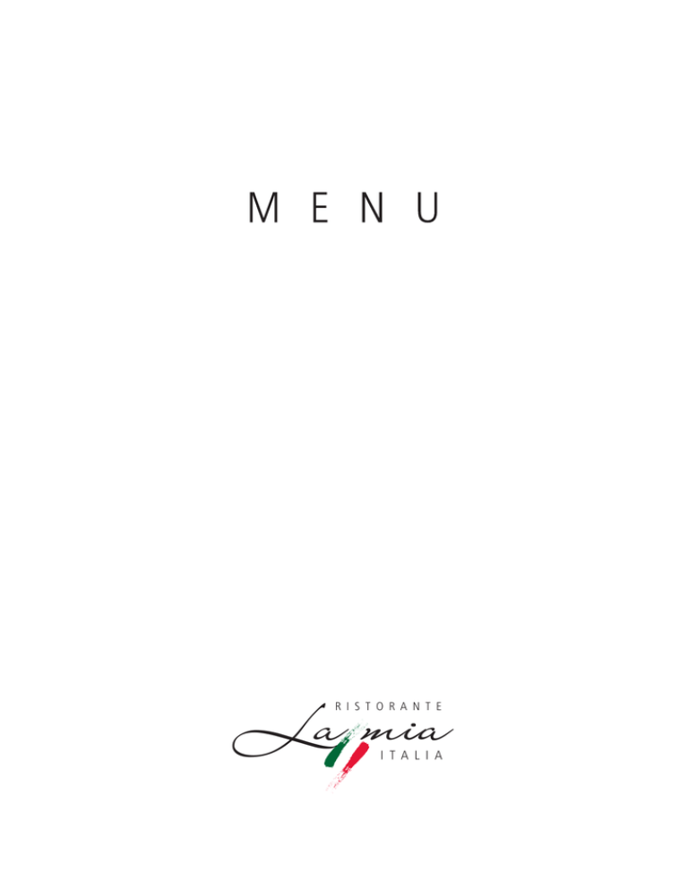 La mia R I S T O R A N T E I T A L I A Przystawki Antipasti Makarony Pasta BRUSCHETTE, 12 pln SPAGHETTI AGLIO, OLIO E PEPERONCINO, 18 pln Grzanki ze świeżymi pomidorami i bazylią. Spaghetti z czosnkiem, oliwą z oliwek, papryczkami chili, natką pietruszki i parmezanem. ASPARAGI ALL’ UOVO, 20 pln Szparagi z jajkiem sadzonym i parmezanem. SPAGHETTI POMODORO FRESCO, 23 pln TOAST CON FORMAGGIO DI CAPRA, 20 pln Spaghetti ze świeżymi pomidorkami koktajlowymi, czosnkiem, mozzarellą i listkami bazylii. Tosty z kozim serem, podane na rukoli z suszonymi pomidorami. TAGLIATELLE ALLA BOLOGNESE, 23 pln GAMBERI IN SALSA D’ AGLIO, 29 pln Krewetki w sosie czosnkowym, podane na sałacie z pomidorkami koktajlowymi. Tagliatelle z mięsem mielonym, czosnkiem, groszkiem, marchewką, w sosie pomidorowym z parmezanem. SPAGHETTI ALLA CARBONARA, 25 pln CARPACCIO DI MANZO, 30 pln Spaghetti z boczkiem, czosnkiem, cebulą, jajkiem i parmezanem. Plastry polędwicy wołowej z rukolą i parmezanem skropione oliwą. SPAGHETTI ALL’ AMATRICIANA, 25 pln Spaghetti z boczkiem, czosnkiem i oliwkami w pikantnym sosie pomidorowym. Sałatki Insalate INSALATA FRESCA, 12 pln SPAGHETTI ALLA PUTTANESCA, 25 pln Spaghetti w sosie pomidorowym z anchois, czosnkiem, kaparami, oliwkami i papryczkami chili. LASAGNE, 25 pln Świeże liście sałat z rukolą, pomidorkami koktajlowymi i parmezanem. PENNE ALL’ ARRABIATA, 26 pln INSALATA CAPRESE, 25 pln Mozzarella z pomido grilowanym bakłażanem i świeżą bazylią. Penne z kurczakiem, czosnkiem, papryczką chili w sosie pomidorowym z parmezanem i natką pietruszki. INSALATA DI PROSCIUTTO DI PARMA, 25 pln PENNE CON POLLO, SPINACI E GORGONZOLA, 27 pln Liście sałaty z szynką parmeńską, pomidorkami koktajlowymi i parmezanem. Penne z kurczakiem, czosnkiem, gorgonzolą i świeżymi liśćmi szpinaku na śmietanie. INSALATA DI POLLO, 28 pln Liście świeżych sałat z grilowanym kurczkiem, pomidorkami koktajlowymi, czerwoną cebulą, oliwą, kremem balsamicznym i parmezanem. TAGLIATELLE CON SALMONE, PANNA E FINOCCHIETTO, 27 pln INSALATA DI SPINACI, PROSCIUTTO CRUDO E GORGONZOLA, 28 pln TAGLIATELLE CON POLLO POMODORI SECCHI E RUCOLA, 27 pln Liście świeżego szpinaku z szynką parmeńską, gorgonzolą, suszonymi pomidorami, pestkami dyni w delikatnym kremie balsamicznym. Tagliatelle z kurczakiem, suszonymi pomidorami, rukolą i parmezanem. Tagliatelle z łososiem i szparagami na śmietanie, posypane świeżym koperkiem. SPAGHETTI FRUTTI DI MARE, 28 pln INSALATA CON SALMONE, 28 pln Spaghetti z owocami morza. Liście świeżych sałat z wędzonym łososiem, kaparami, koperkiem w sosie vinegrette, podane z grzankami. PENNE CON VERDURE, 28 pln CONTROFILETTO DI MANZO MARINATO CON RUCOLA, 30 pln Penne z pieczarkami, papryką, czosnkiem, cukinią, natką pietruszki, kaparami i oliwkami w sosie pomidorowym z parmezanem. Marynowane w kremie balsamicznym kawałki polędwicy wołowej, podane na rucoli z parmezanem. PAPPARDELLE CON SPECK E FUNGHI, 28 pln Pappardelle z boczkiem, czosnkiem, porem, grzybami i natką pietruszki na śmietanie. Focaccia PAPPARDELLE CON SALMONE, 28 pln Pappardelle z łososiem, świeżymi pomidorami i bazylią na oliwie. SPAGHETTI CON COZZE AL VINO BIANCO, 33 pln FOCACCIA, 10 pln Ciasto z pieca z oliwą z oliwek, solą morską i rozmarynem. Spaghetti na białym winie z mulami z natką pietruszki i pomidorkami koktajlowymi. /zapytaj o dostępność kelnera/ FOCACCIA CON PROSCIUTTO CRUDO, 23 pln TAGLIATELLE NERO CON GAMBERI E RUCOLA, 33 pln Ciasto z pieca z szynką parmeńską, rukolą, pomidorkami koktajlowymi i parmezanem. Tagliatelle z suszem z kałamarnicy z krewetkami na białym winie, czosnkiem, pomidorkami koktajlowymi i rucolą. Pizza MARINARA, 17 pln Sos pomidorowy, czosnek, oregano. MARGHERITA, 19 pln Sos pomidorowy, mozzarella, świeża bazylia. VESUVIO, 22 pln Sos pomidorowy, mozzarella, szynka. SALAME, 22 pln Sos pomidorowy, mozzarella, salami. SALAME PICCANTE, 24 pln Sos pomidorowy, mozzarella, salami pikantne, czarne oliwki. PROSCIUTTO E FUNGHI, 24 pln Sos pomidorowy, mozzarella, szynka, pieczarki, cebula. GORGONZOLA E PERE, 29 pln Sos pomidorowy, mozzarella, szynka parmeńska, gorgonzola, gruszka. GAMBERI, 29 pln Sos pomidorowy, mozzarella, krewetki, czosnek, natka pietruszki. SPINACI, 29 pln Sos pomidorowy, mozzarella, gorgonzola, szpinak, jajka przepiórcze. FRUTTI DI MARE, 29 pln Sos pomidorowy, mozzarella, owoce morza, czosnek, natka pietruszki. CON FORMAGGIO DI CAPRA, 29 pln Sos pomidorowy, mozzarella, ser kozi, szynka, suszone pomidory. SAPORI SPEZIATI, 29 pln Sos pomidorowy, mozzarella, salami pikantne, gorgonzola, kapary. BUFALA BIANCA, 29 pln Śmietana, mozzarella z mleka bawolego, rukola, pomidorki koktajlowe, parmezan. ANANAS E PROSCIUTTO, 24 pln Sos pomidorowy, mozzarella, szynka, ananas. PRIMAVERA, 25 pln Zupy Minestre Sos pomidorowy, śmietana, mozzarella, szynka, sałata lodowa. PROSCIUTTO E CARCOFI, 25 pln VELLUTATA DI POMODORO, 12 pln Sos pomidorowy, mozzarella, szynka, karczochy. Krem z pomidorów z mozzarellą i świeżą bazylią. NAPOLETANA, 26 pln BRODO DI POLLO, 12 pln Sos pomidorowy, mozzarella, anchois, kapary, czarne oliwki. Delikatny rosół z kury, ze świeżych warzyw z nitkami domowego makaronu i natką pietruszki. VERDURE, 26 pln Sos pomidorowy, mozzarella, pieczarki, papryka, oliwki, cebula, cukinia. MARGHERITA CON MOZZARELLA DI BUFALA DOP, 26 pln ZUPPA DEL GIORNO, 12 pln Zupa dnia. Sos pomidorowy, mozzarella z mleka bawolego, peperoncino, bazylia. FUNGHI E SALUMI, 27 pln Sos pomidorowy, mozzarella, szynka, boczek, salami, cebula, pieczarki. Ziemniaczane kluseczki Gnocchi CAPRICCIOSA, 27 pln Sos pomidorowy, mozzarella, szynka, papryka, pieczarki, oliwki. CARBONARA, 27 pln Sos pomidorowy, mozzarella, jajko, boczek, cebula, parmezan. SICILIANA, 27 pln Sos pomidorowy, mozzarella, tuńczyk, kapary, czerwona cebula. GRECA, 27 pln Sos pomidorowy, mozzarella, szynka, oliwki, cebula, ser feta, oregano. QUATTRO STAGIONI, 27 pln