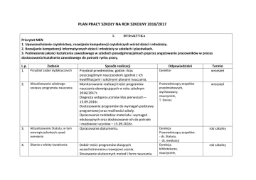 PLAN PRACY SZKOŁY NA ROK SZKOLNY 2016/2017