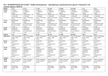 IFA HARMONOGRAM ZAJĘĆ Studia niestacjonarne Specjalizacja