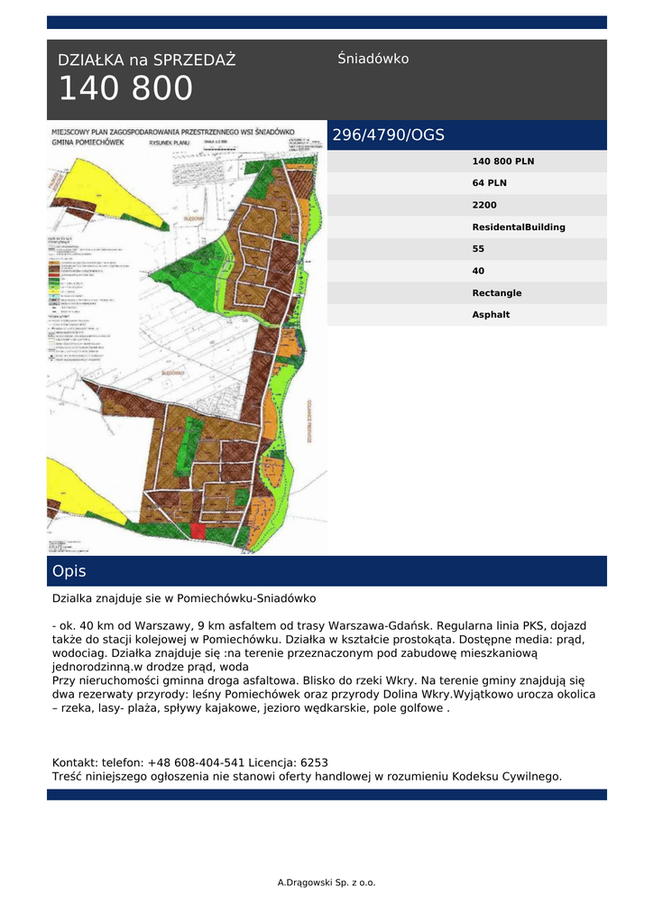 Śniadówko DZIAŁKA na SPRZEDAŻ 140 800 296/4790/OGS 140 800 PLN 64 PLN 2200 ResidentalBuilding 55 40 Rectangle Asphalt Opis Dzialka znajduje sie w Pomiechówku-Sniadówko - ok. 40 km od Warszawy, 9 km asfaltem od trasy Warszawa-Gdańsk. Regularna linia PKS, dojazd także do stacji kolejowej w Pomiechówku. Działka w kształcie prostokąta. Dostępne media: prąd, wodociag. Działka znajduje się :na terenie przeznaczonym pod zabudowę mieszkaniową jednorodzinną.w drodze prąd, woda Przy nieruchomości gminna droga asfaltowa. Blisko do rzeki Wkry. Na terenie gminy znajdują się dwa rezerwaty przyrody: leśny Pomiechówek oraz przyrody Dolina Wkry.Wyjątkowo urocza okolica – rzeka, lasy- plaża, spływy kajakowe, jezioro wędkarskie, pole golfowe . Kontakt: telefon: +48 608-404-541 Licencja: 6253 Treść niniejszego ogłoszenia nie stanowi oferty handlowej w rozumieniu Kodeksu Cywilnego. A.Drągowski Sp. z o.o. Bożenna Szkrabko tel. 608404541 email: [email protected] A.Drągowski Sp. z o.o. Powered by TCPDF (www.tcpdf.org)