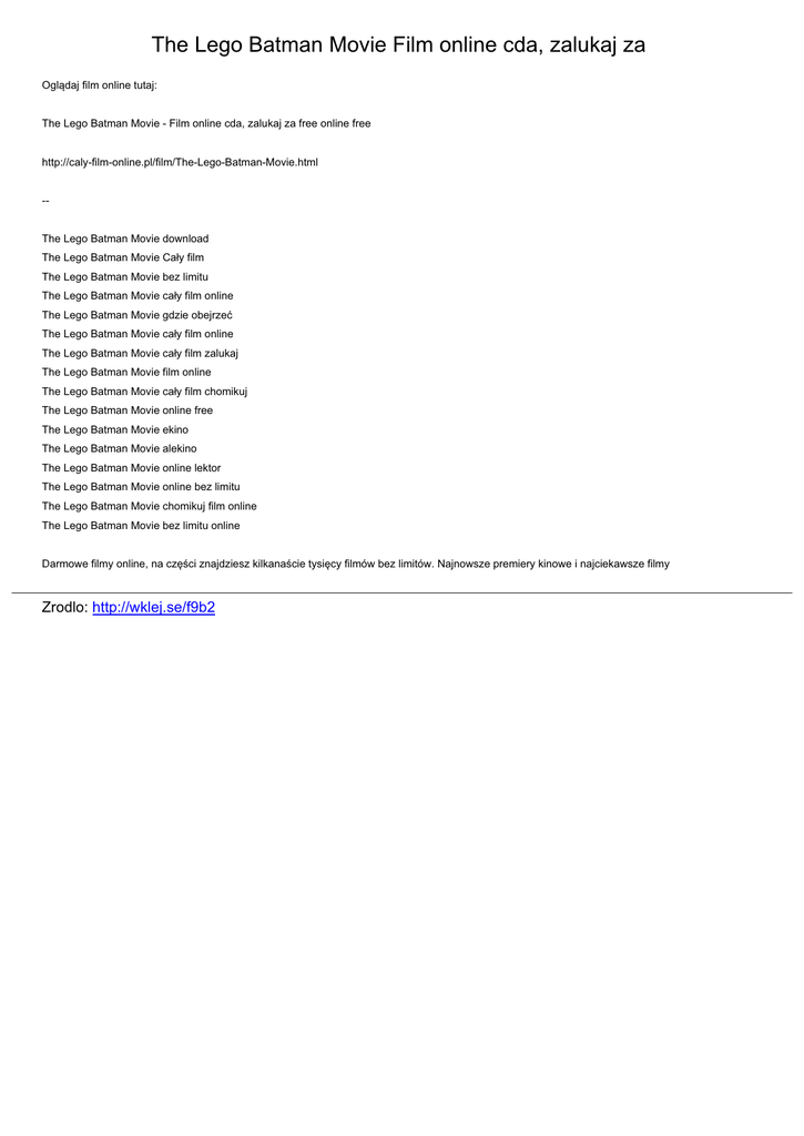 The Lego Batman Movie Film online cda, zalukaj za Oglądaj film online tutaj: The Lego Batman Movie - Film online cda, zalukaj za free online free http://caly-film-online.pl/film/The-Lego-Batman-Movie.html -The Lego Batman Movie download The Lego Batman Movie Cały film The Lego Batman Movie bez limitu The Lego Batman Movie cały film online The Lego Batman Movie gdzie obejrzeć The Lego Batman Movie cały film online The Lego Batman Movie cały film zalukaj The Lego Batman Movie film online The Lego Batman Movie cały film chomikuj The Lego Batman Movie online free The Lego Batman Movie ekino The Lego Batman Movie alekino The Lego Batman Movie online lektor The Lego Batman Movie online bez limitu The Lego Batman Movie chomikuj film online The Lego Batman Movie bez limitu online Darmowe filmy online, na części znajdziesz kilkanaście tysięcy filmów bez limitów. Najnowsze premiery kinowe i najciekawsze filmy Zrodlo: http://wklej.se/f9b2