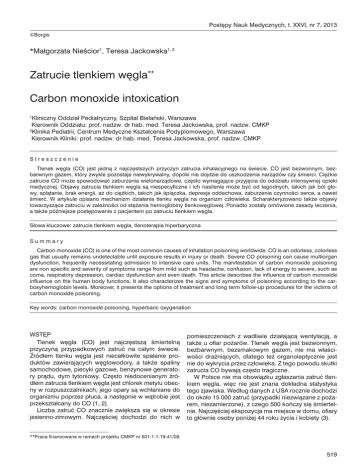 Zatrucie tlenkiem węgla - Postępy Nauk Medycznych