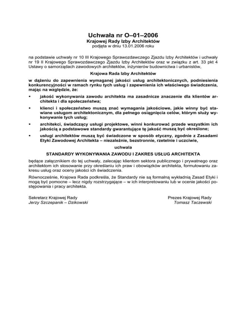 Uchwała nr O–01–2006