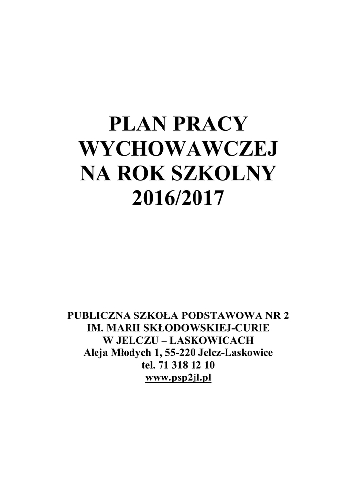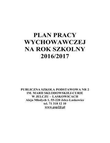 Plan pracy wychowawczej na rok szkolny 2016/2017