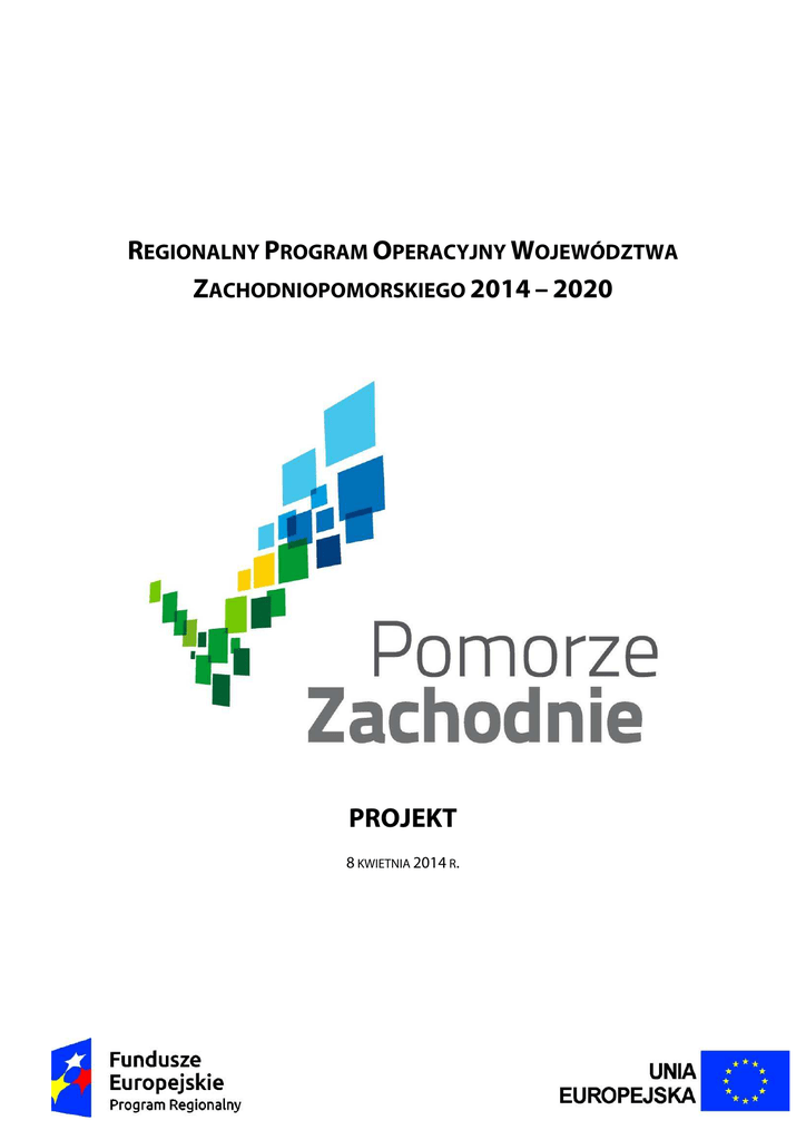 REGIONALNY PROGRAM OPERACYJNY WOJEWÓDZTWA ZACHODNIOPOMORSKIEGO 2014 – 2020 PROJEKT 8 KWIETNIA 2014 R. SPIS TREŚCI SEKCJA 1. STRATEGIA DOTYCZĄCA WKŁADU PROGRAMU OPERACYJNEGO W REALIZACJĘUNIJNEJ STRATEGII NA RZECZ INTELIGENTNEGO, ZRÓWNOWAŻONEGO WZROSTUSPRZYJAJĄCEGO WŁĄCZENIU SPOŁECZNEMU ORAZ OSIĄGNIĘCIE SPÓJNOŚCIGOSPODARCZEJ, SPOŁECZNEJ I TERYTORIALNEJ .................................................................................................................................................... 1 SEKCJA 2: OSIE PRIORYTETOWE ....................................................................................................................... 79 I GOSPODARKA, INNOWACJE, NOWOCZESNE TECHNOLOGIE ............................................................................................................ 79 PRIORYTET INWESTYCYJNY 1.2: Promowanie inwestycji przedsiębiorstw w B+I, rozwijanie powiązań i synergii między przedsiębiorstwami, ośrodkami B+R i sektorem szkolnictwa wyższego (…), wspieranie badań technologicznych i stosowanych, linii pilotażowych, działań w zakresie wczesnej walidacji produktów i zaawansowanych zdolności produkcyjnych i pierwszej produkcji w dziedzinie kluczowych technologii (...) .................................................................................................................. 81 PRIORYTET INWESTYCYJNY 1.1: Udoskonalanie infrastruktury B+I i zwiększanie zdolności do osiągnięcia doskonałości w zakresie B+I oraz wspieranie ośrodków kompetencji, w szczególności tych, które leżą w interesie Europy ....................................................................................................... 85 PRIORYTET INWESTYCYJNY 3.3: Wspieranie tworzenia i poszerzania zaawansowanych zdolności w zakresie rozwoju produktów i usług ..................................................................................................... 88 PRIORYTET INWESTYCYJNY 3.1: Promowanie przedsiębiorczości, w szczególności poprzez ułatwianie gospodarczego wykorzystywania nowych pomysłów oraz sprzyjanie tworzeniu nowych firm, w tym również poprzez inkubatory przedsiębiorczości ............................................................... 91 PRIORYTET INWESTYCYJNY 3.2: Opracowywanie i wdrażanie nowych modeli biznesowych dla MŚP, w szczególności w celu umiędzynarodowienia .................................................................................... 94 PRIORYTET INWESTYCYJNY 3.4: Wspieranie zdolności MŚP do wzrostu na rynkach regionalnych, krajowych i międzynarodowych oraz do angażowania się w procesy innowacji ................................ 97 II GOSPODARKA NISKOEMISYJNA ....................................................................................................................................................... 104 PRIORYTET INWESTYCYJNY 4.5: Promowanie strategii niskoemisyjnych dla wszystkich rodzajów terytoriów, w szczególności dla obszarów miejskich, w tym wspieranie zrównoważonej multimodalnej mobilności miejskiej i działań adaptacyjnych mających oddziaływanie łagodzące na zmiany klimatu ................................................................................................................................... 104 PRIORYTET INWESTYCYJNY 4.3: Wspieranie efektywności energetycznej, inteligentnego zarządzania energią i wykorzystywania odnawialnych źródeł energii w budynkach publicznych i sektorze mieszkaniowym. ................................................................................................................................. 108 PRIORYTET INWESTYCYJNY 4.1: Wspieranie wytwarzania i dystrybucji energii pochodzącej ze źródeł odnawialnych ..................................................................................................................................... 113 PRIORYTET INWESTYCYJNY 4.2: promowanie efektywności energetycznej i korzystania z odnawialnych źródeł energii w przedsiębiorstwach .......................................................................... 118 PRIORYTET INWESTYCYJNY 4.7: Promowanie wykorzystywania wysokosprawnej kogeneracji ciepła i energii elektrycznej w oparciu o zapotrzebowanie na ciepło użytkowe ............................................ 122 III OCHRONA ŚRODOWISKA I ADAPTACJA DO ZMIAN KLIMATU ...................................................................................................... 128 PRIORYTET INWESTYCYJNY 5.2: Wspieranie inwestycji ukierunkowanych na konkretne rodzaje zagrożeń przy jednoczesnym zwiększeniu odporności na klęski żywiołowe i katastrofy i rozwijaniu systemów zarządzania klęskami żywiołowymi i katastrofami .......................................................... 130 PRIORYTET INWESTYCYJNY 6.2: Inwestowanie w sektor gospodarki wodnej celem wypełnienia zobowiązań określonych w dorobku prawnym Unii zakresie środowiska oraz zaspokojenia wykraczających poza te zobowiązania potrzeb inwestycyjnych, określonych przez państwa członkowskie ...................................................................................................................................... 134 PRIORYTET INWESTYCYJNY 6.1: Inwestowanie w sektor gospodarki odpadami celem wypełnienia zobowiązań określonych w dorobku prawnym Unii w zakresie środowiska oraz zaspokojenia wykraczających poza te zobowiązania potrzeb inwestycyjnych określonych przez państwa członkowskie ...................................................................................................................................... 138 IV NATURALNE OTOCZENIE CZŁOWIEKA............................................................................................................................................. 145 PRIORYTET INWESTYCYJNY 6.3: Zachowanie, ochronę, promowanie i rozwój dziedzictwa naturalnego i kulturowego;..........................................................................................